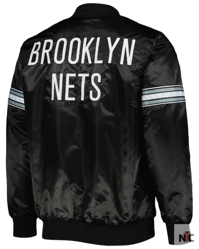 Men’s Brooklyn Nets Starter Black Pick & Roll Satin Full-Snap Varsity Jacket