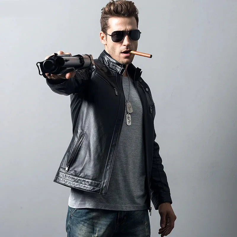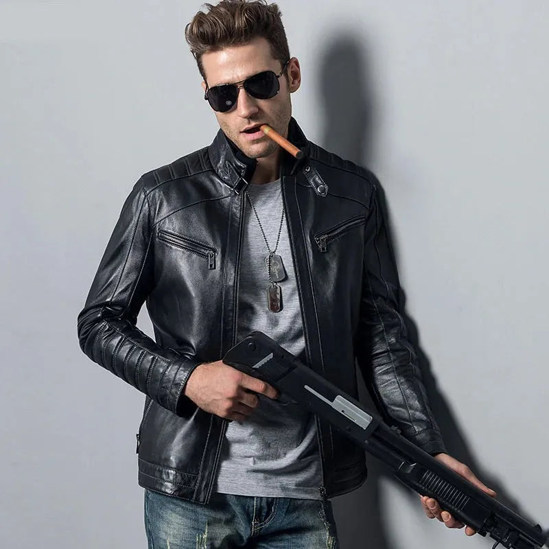 Men’s Genuine Sheepskin Biker Leather Jacket