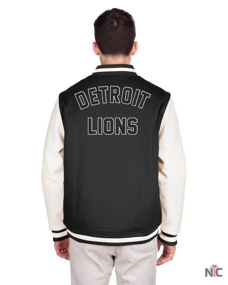 Men’s New Era Black Detroit Lions Third Down Varsity Full-Snap Jacket ‐ Female / 4XL
