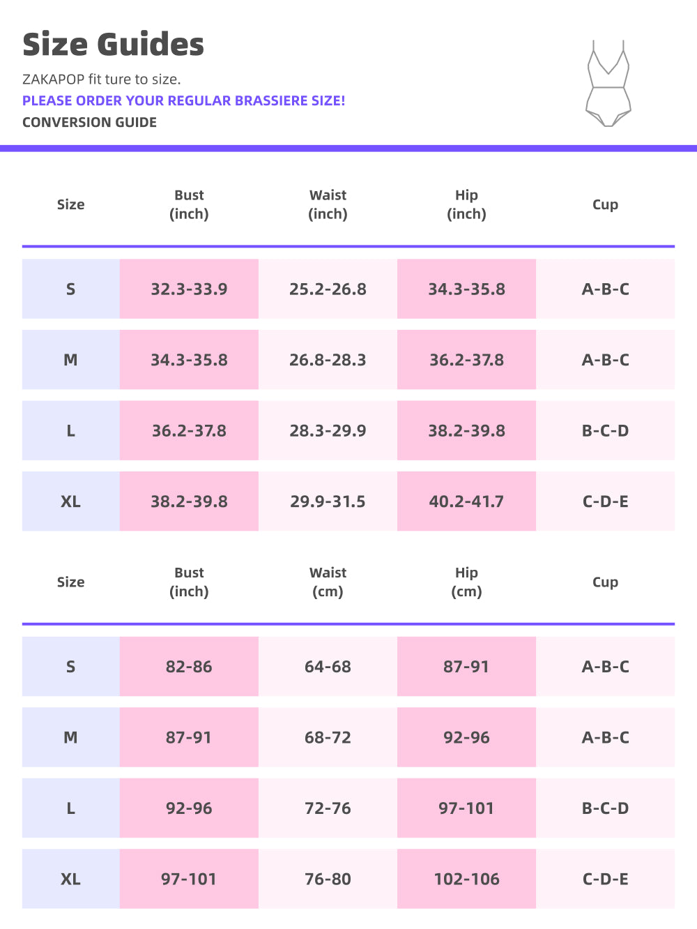 - Choose the larger size if your size is between two sizes. Please allow 2-3cm differences due to manual measurement.