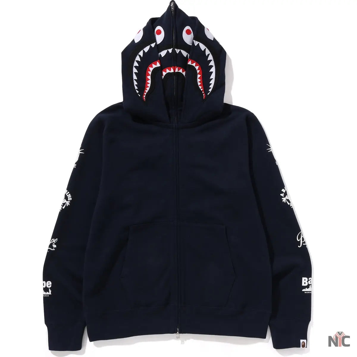 Bape Us Double Shark Full Zip Hoodie Mens ‐ Female / 3XL / Navy