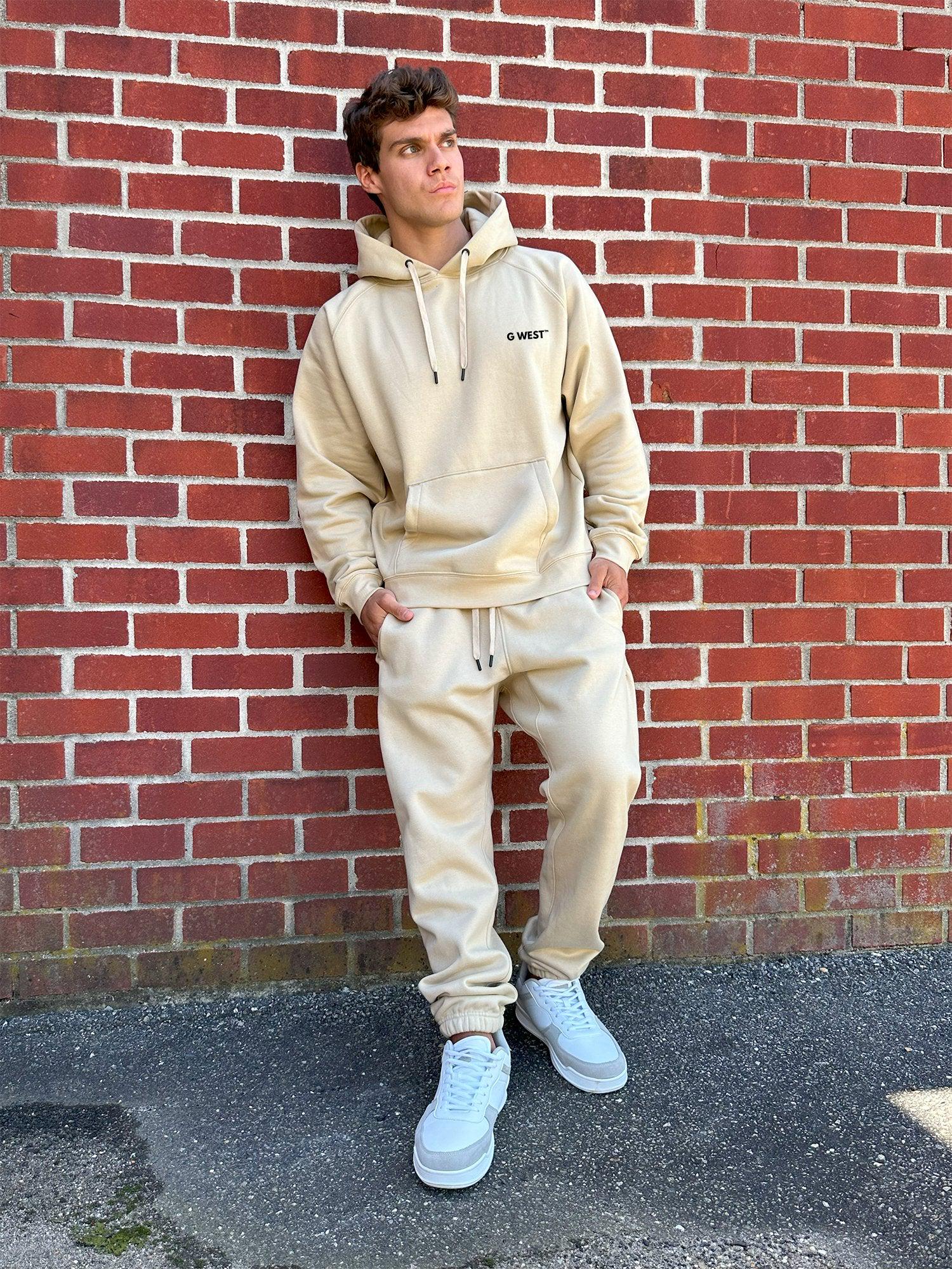 G West Mens Stick Figure Heavy Premium Hoodie ‐ Cream / XL