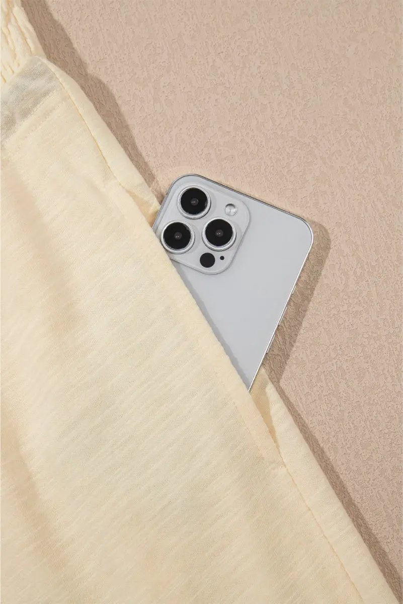 Practical and versatile, this set is ideal for brunch, casual gatherings, or day-to-day wear. The neutral shade easily coordinates with belts, jackets, and sandals to create a range of laid-back yet chic looks.