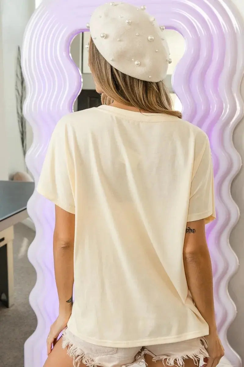 BiBi Rhinestone Beaded Short Sleeve Top