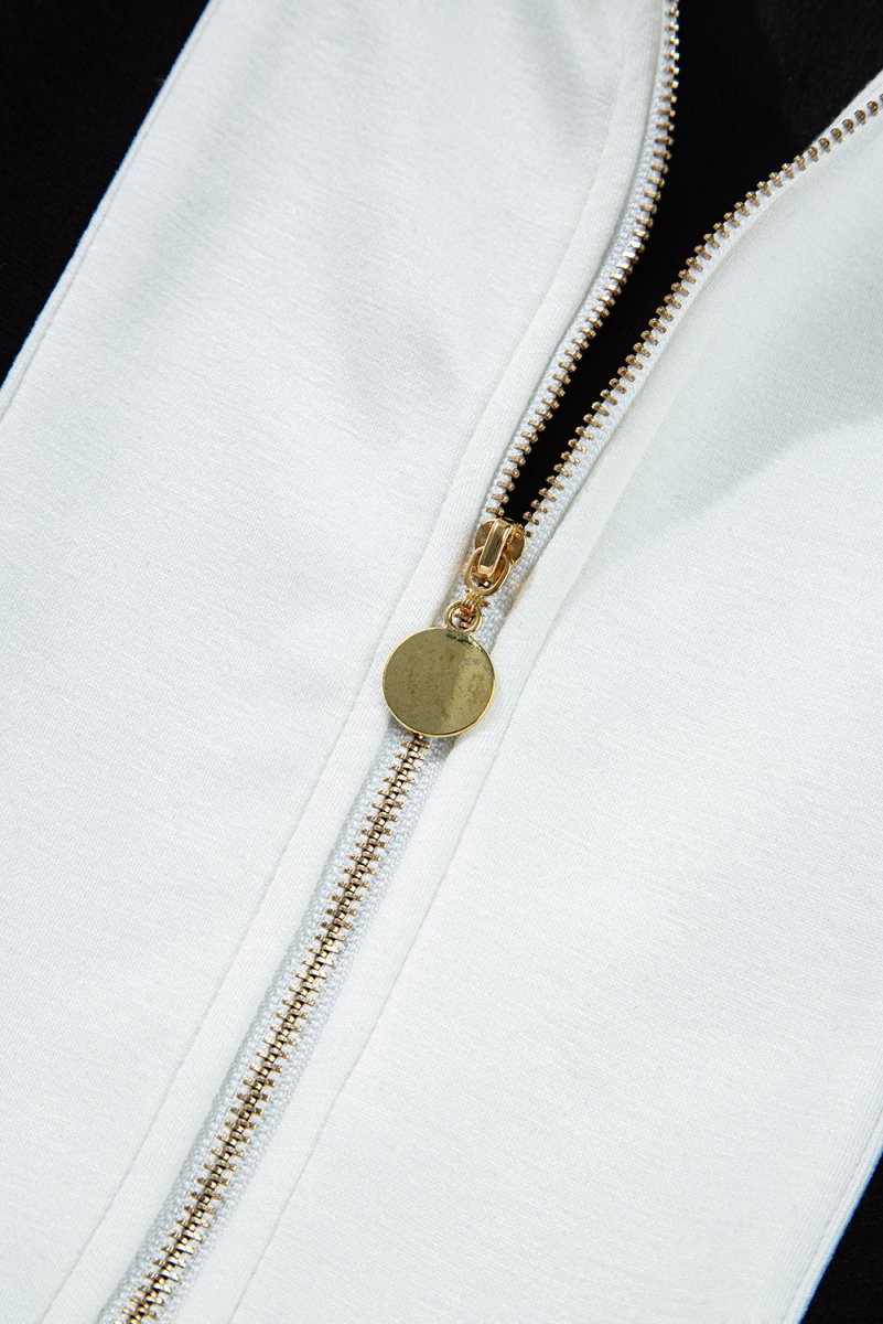 Black Contrast Collar Patchwork Zip Front Romper for Women ‐ Black / XL / 50%Polyester+45%Viscose+5%Elastane