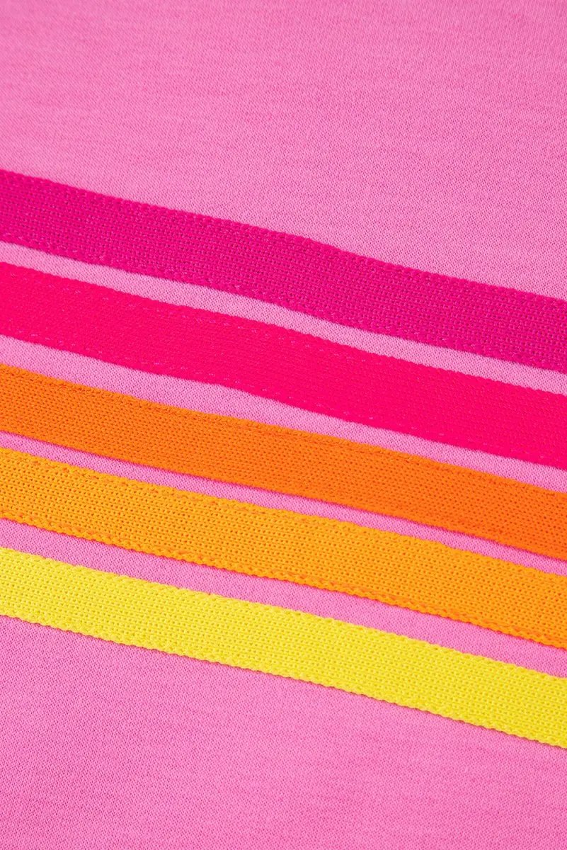 Love Salve Striped Patch Tee Women's Daily Casual Top - Cute & Comfy ‐ Bonbon / 2XL / 85%Polyester+10%Cotton+5%Elastane