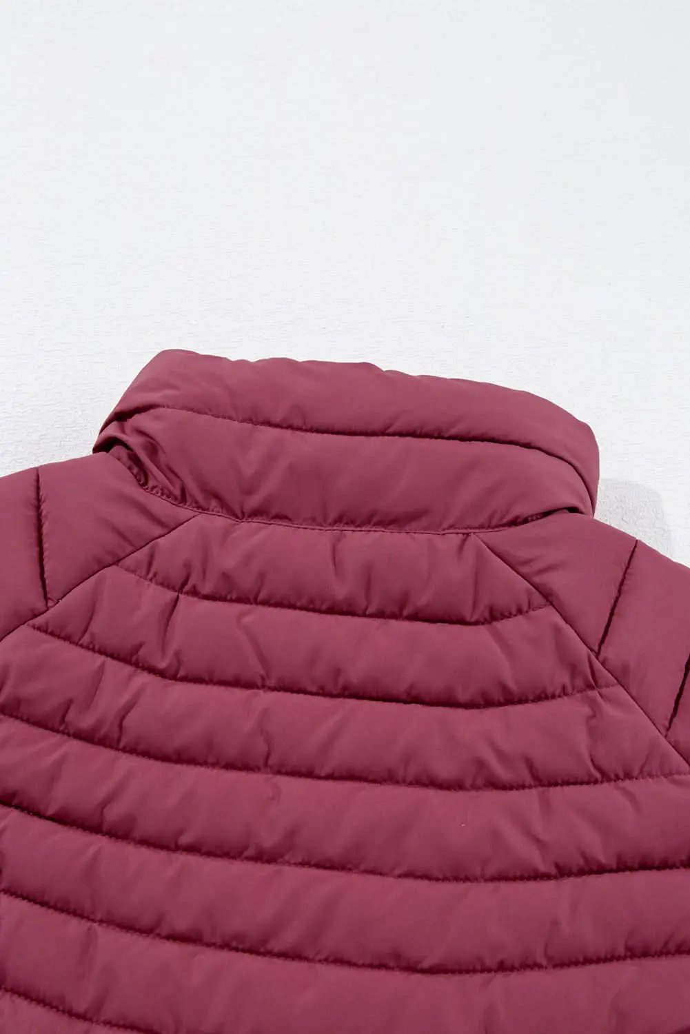 Burgundy Plush Collared Quilted Zipped Puffer Vest