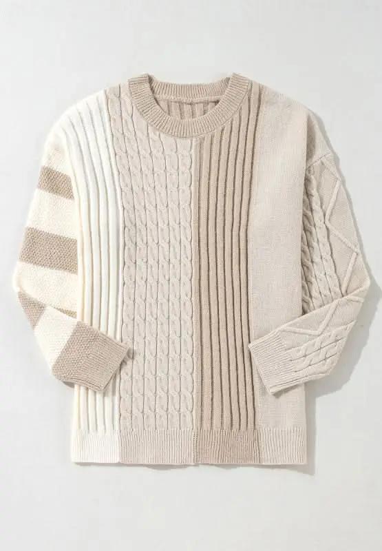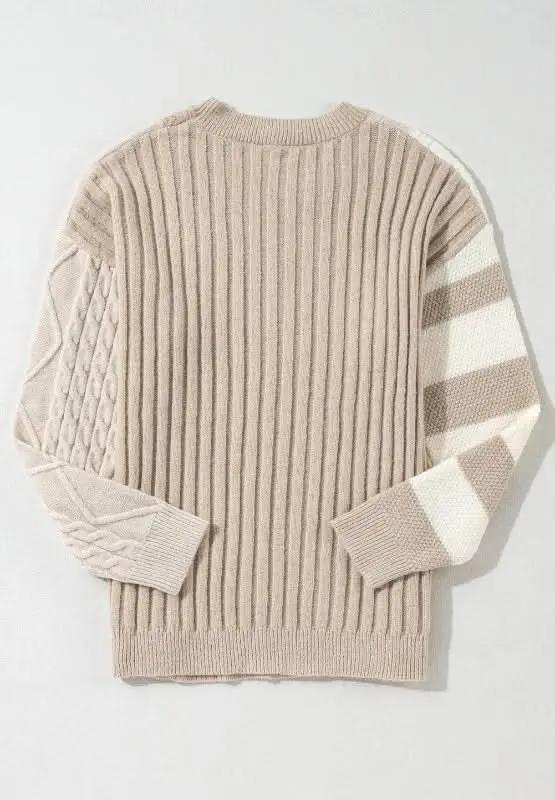Trendsi Cable-Knit Color Block Women's Sweater: Cozy & Stylish Knitwear ‐ Tan / S