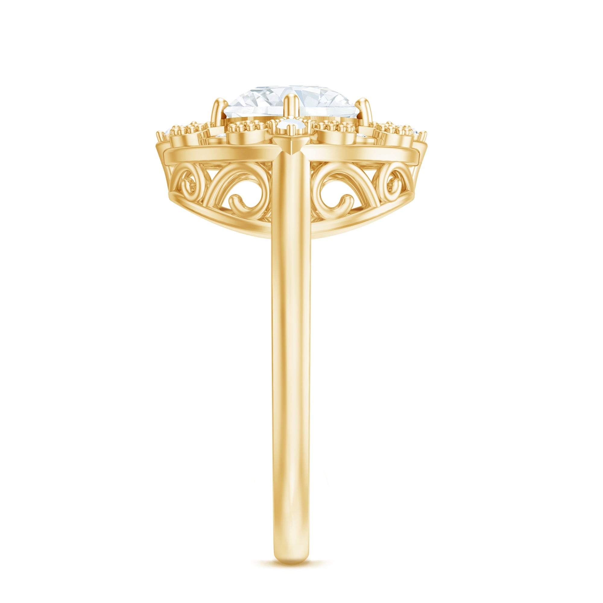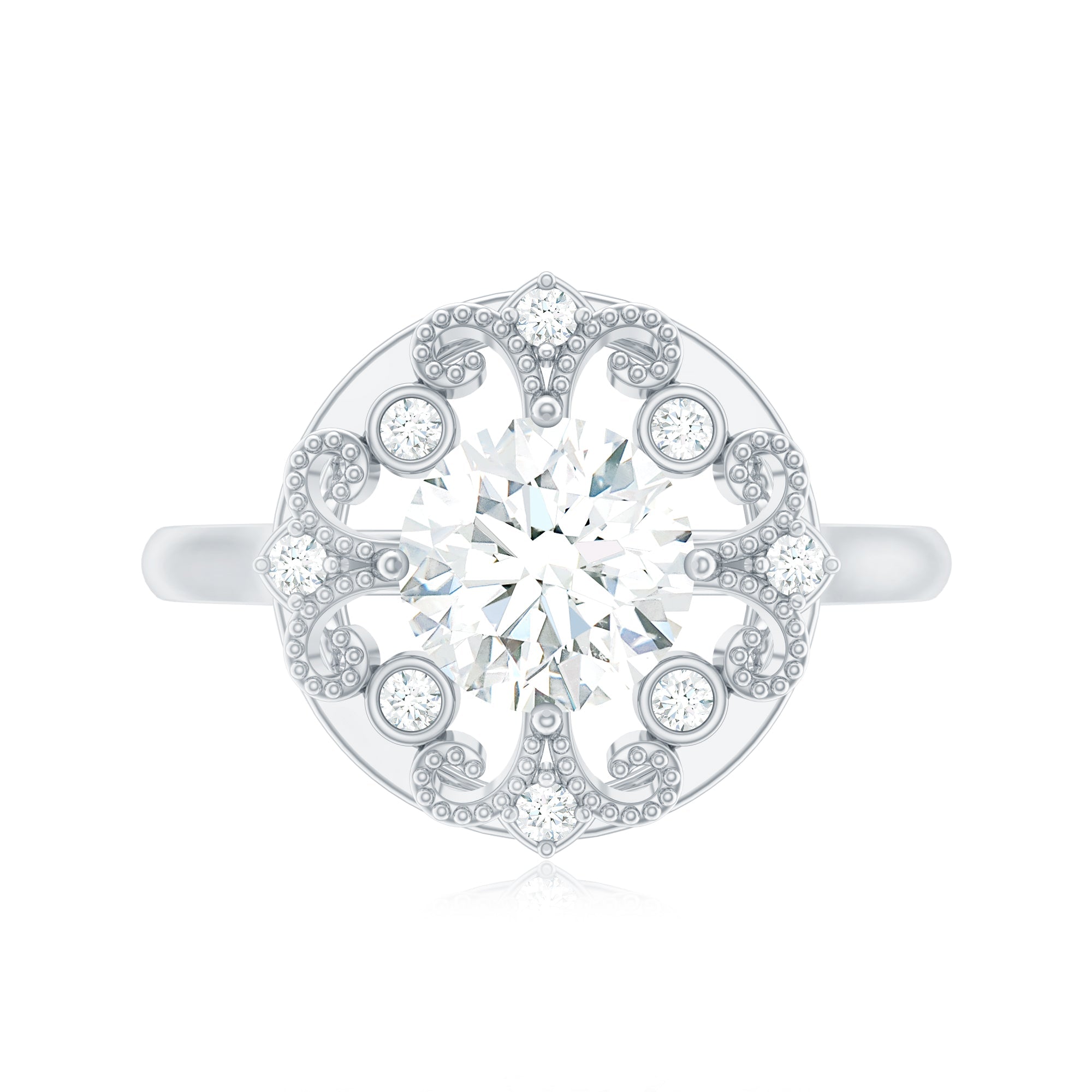 Step back into the magical charm of the past with this stunning Lab Grown Diamond Engagement Ring, designed to make you shine brilliantly. It boasts a mesmerizing design, featuring a 7 MM round lab created diamond, beautifully held in prong setting at the center, surrounded by intricate beaded details and smaller stones arranged in a distinctive pattern that enhances the beauty of this Antique Engagement Ring. All the diamonds in this Vintage Style Engagement Ring are lab grown, making it both affordable and eco-friendly. With its timeless appeal and modern sparkle, this Diamond Art Deco Ring stands as a beautiful symbol of enduring love. Make a striking statement with this classic piece that combines traditional elegance with vintage charm. This exquisite 1 Carat Diamond Ring will elevate any outfit, adding a hint of refined shine and sophistication. Additionally, it is available in a variety of metal colors and purity options, allowing you to choose what best suits your taste. For that special person who loves glamour, this Diamond Vintage Ring is the perfect gift for her memorable occasion. To ensure its quality, it comes with a certificate of authenticity, providing you with peace of mind.