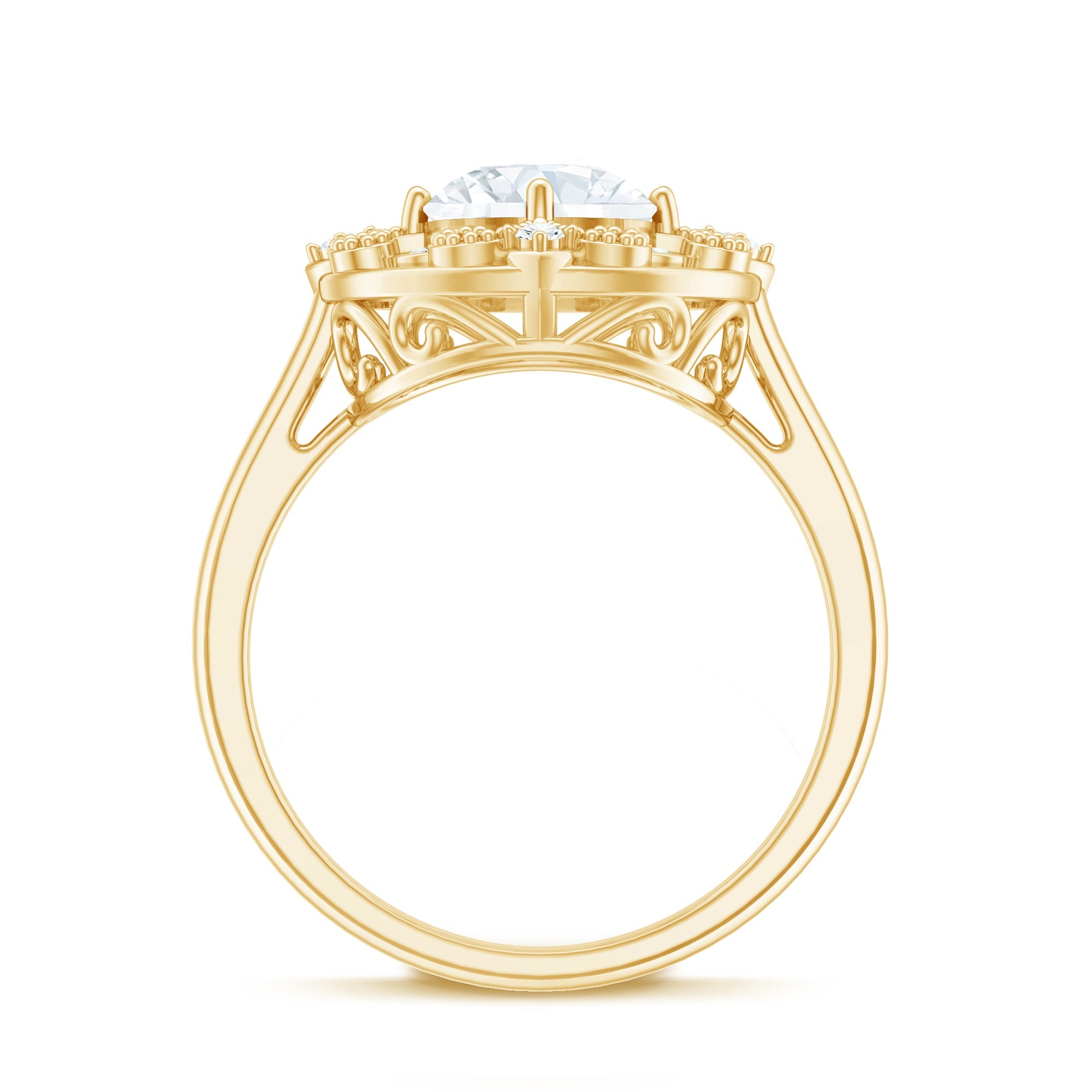 Certified Lab Grown Diamond Beaded Engagement Ring for Women ‐ Lab - ( EF-VS ) / 14K Yellow Gold / 4.5