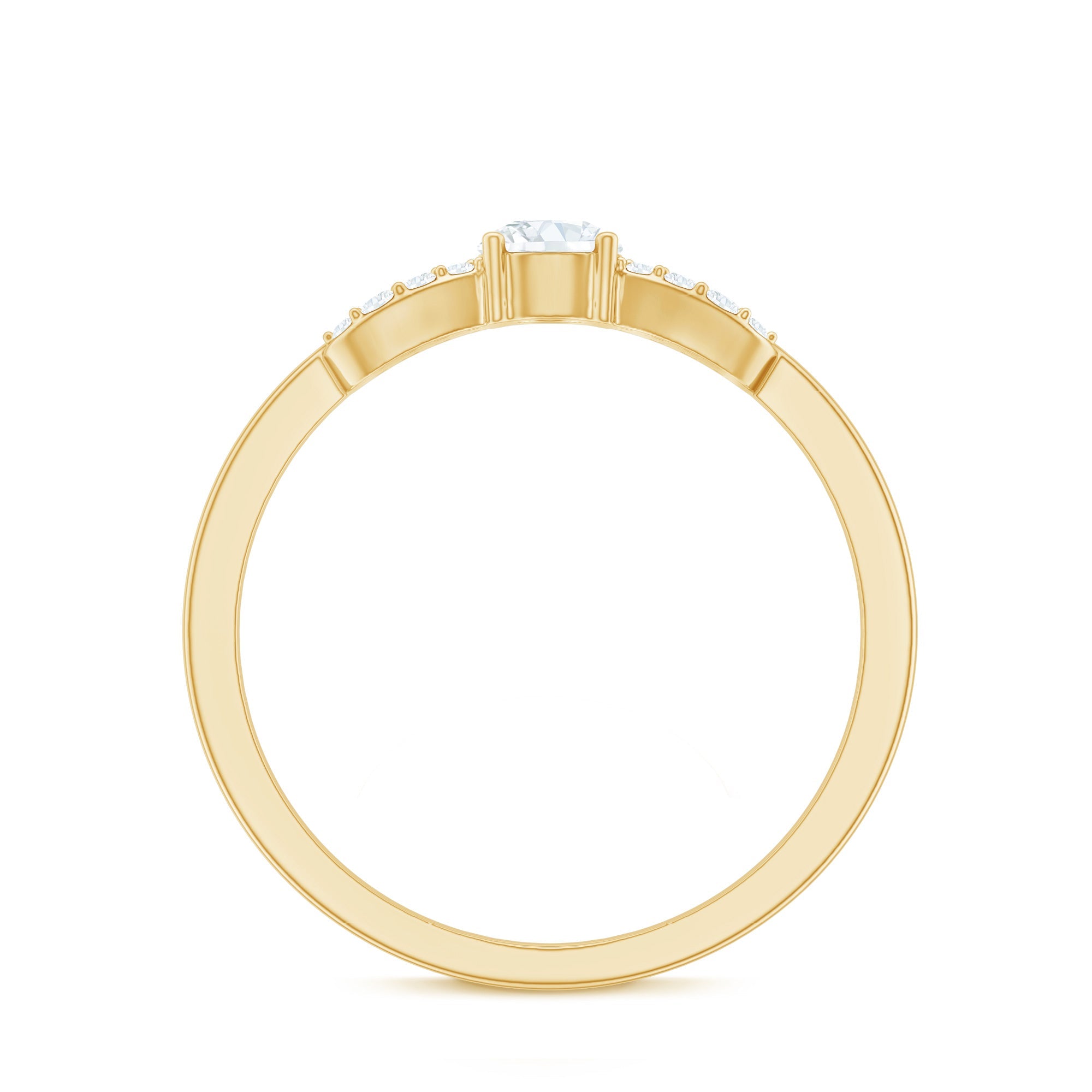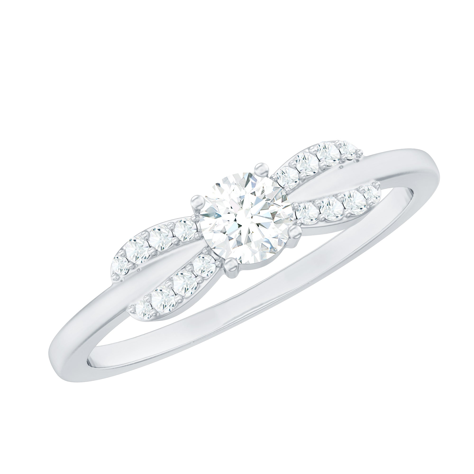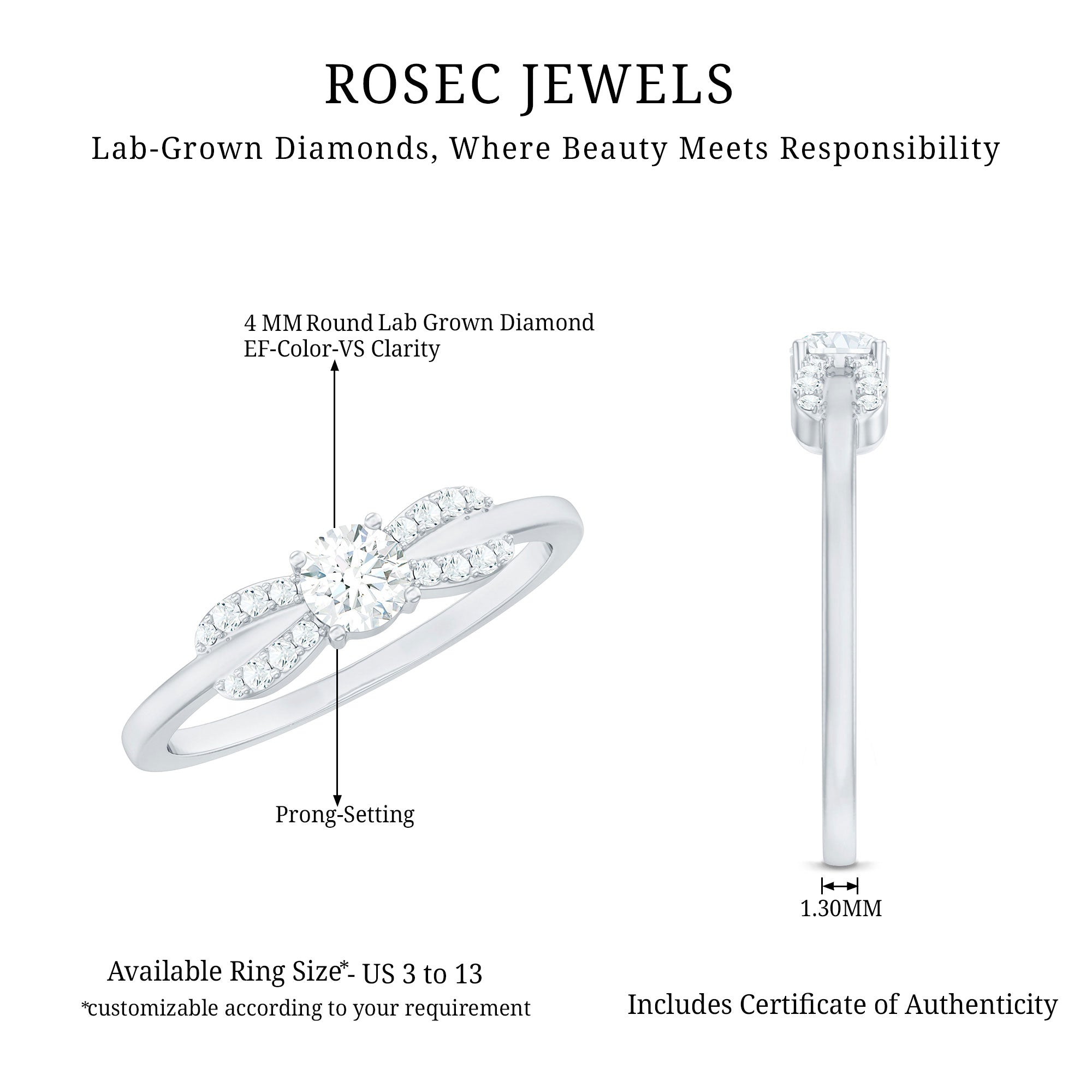 Take her heart away with the stunning details of this Promise Engagement Ring featuring a stunning 4 MM round shaped lab grown diamond gemstone of EF-VS quality set as a centerpiece in prong setting. On either side, shimmering smaller diamonds are arranged perfectly, creating a bow like pattern. This Diamond Promise Ring will surely be the right choice for her, something she will always keep close to her heart. Meticulously created by Rosec Jewels, this Round Diamond Ring blends modern innovation with classic beauty, ensuring a unique and ethically sourced symbol of your everlasting love.