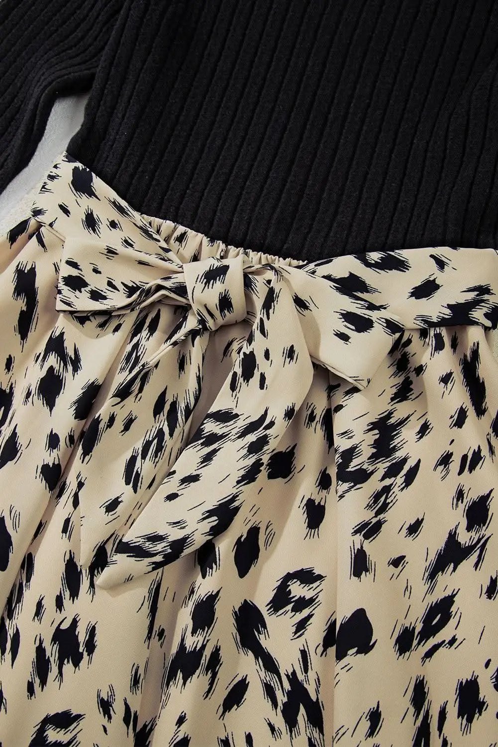 Elevate your everyday wardrobe with this chic black belted A-line dress. The silhouette flares from the waist to create a flattering shape, while a ribbed knit fabric offers comfort and flexibility for all-day wear. A waist belt defines the figure and lets you adjust the fit with ease. Subtle printed details add personality without overpowering the clean lines. Designed for daily wear, the dress pairs neatly with ankle boots, flats, or heels and can be styled with a necklace or scarf for varying looks. Key details: color black; fabric ribbed knit; compatible with a range of accessories and footwear. This piece blends style and comfort in a versatile, easy-to-wear silhouette.