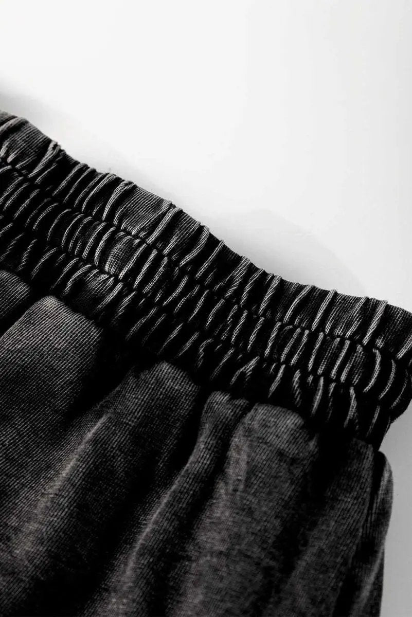 Chic Black Mineral Wash High-Waisted French Terry Casual Shorts