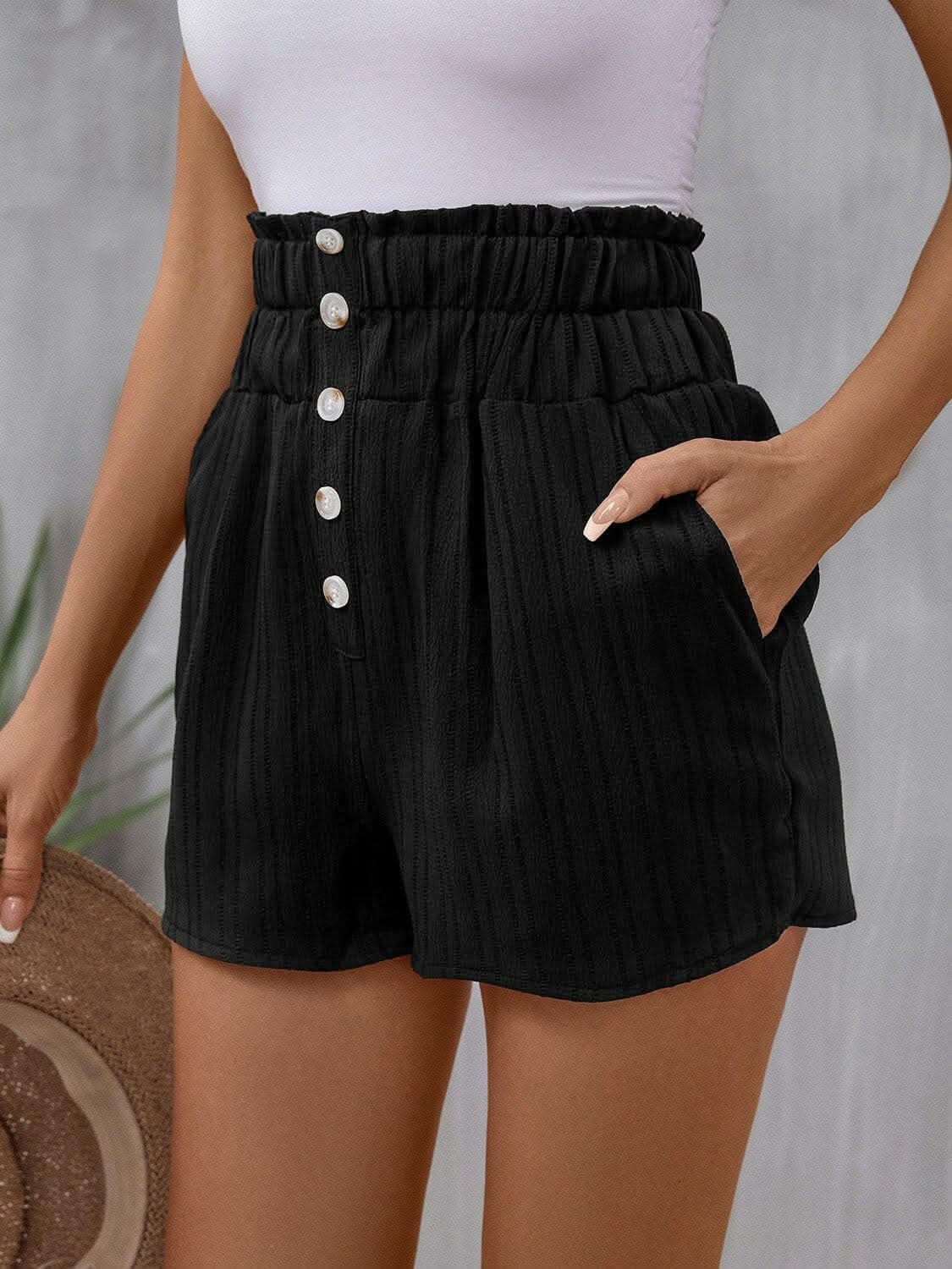 Trendsi High Rise Shorts Women's Casual Summer Shorts with Pockets ‐ Black / XL