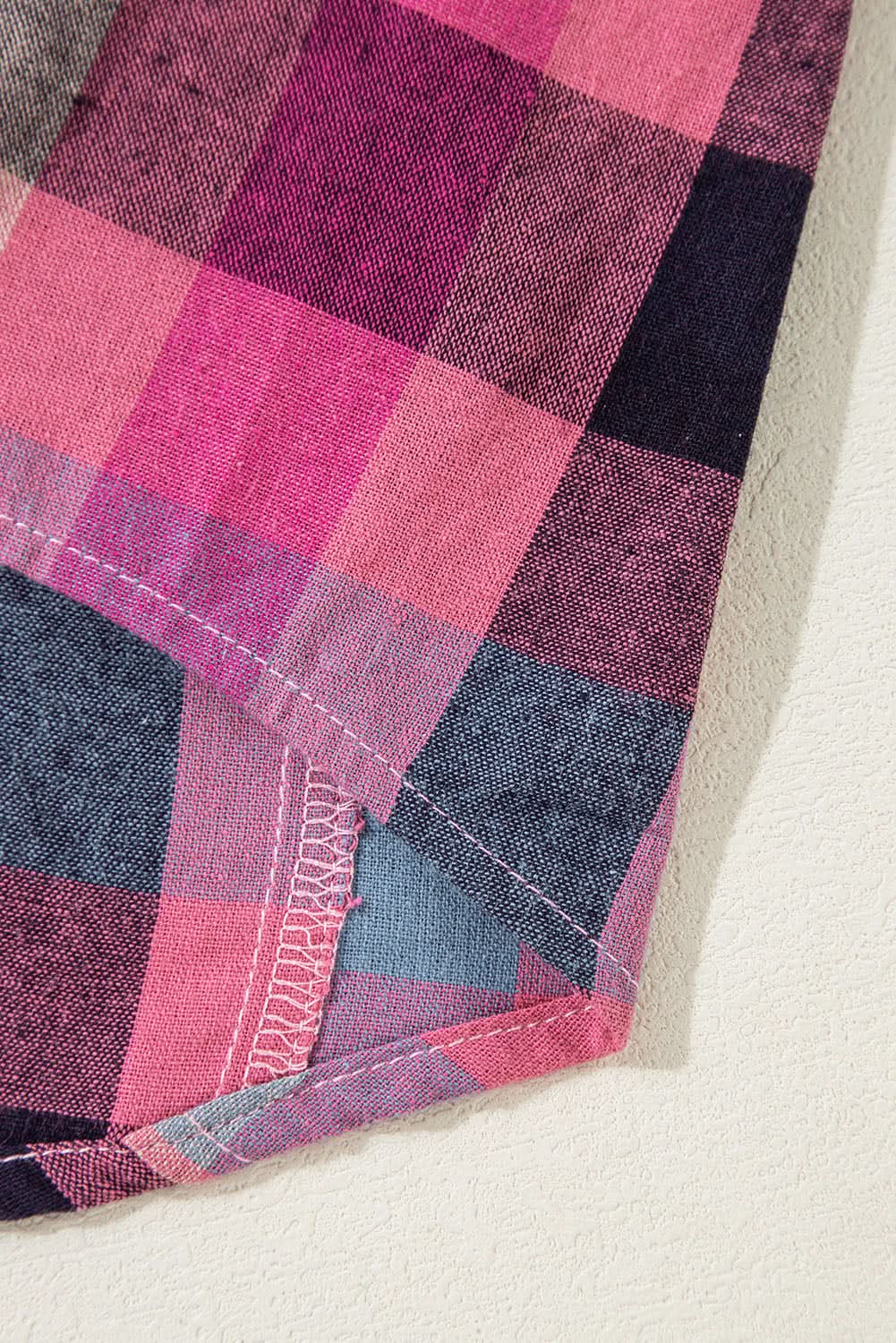 Elevate your wardrobe with our Chic Plus Size Checkered Shirt. Crafted in 100% cotton, this button-up features a classic checkered print accented by a delicate rose stripe for subtle charm. The relaxed, flattering silhouette is designed to fit sizes 1X through 4X, offering comfortable mobility while maintaining a polished look.