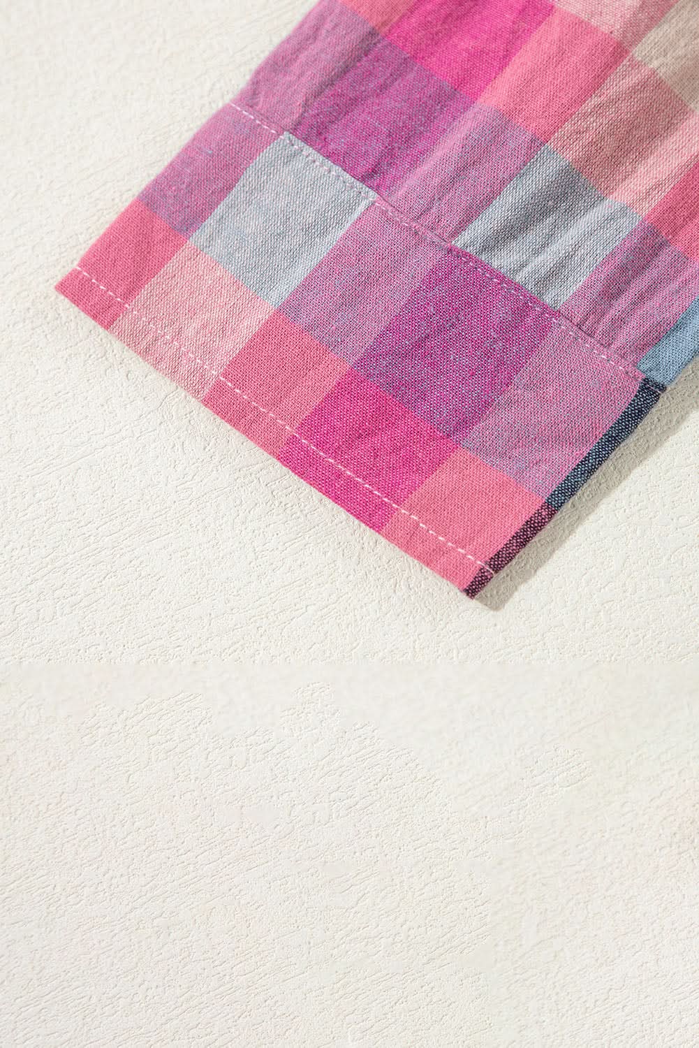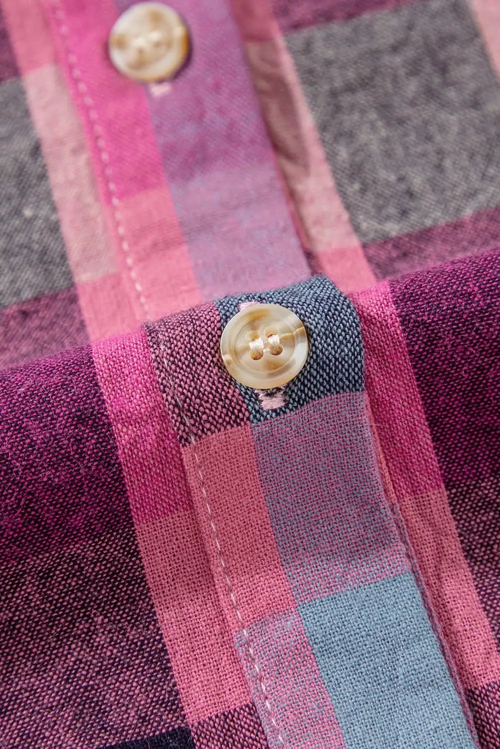 Details include a traditional front placket with pearlescent buttons, a single chest pocket, and long sleeves with adjustable cuffs. The breathable cotton keeps you comfortable throughout the day, whether you’re at the office or enjoying casual outings. The color story combines pink and rose tones with touches of blue and gray to create a versatile, easy-to-wear shirt.