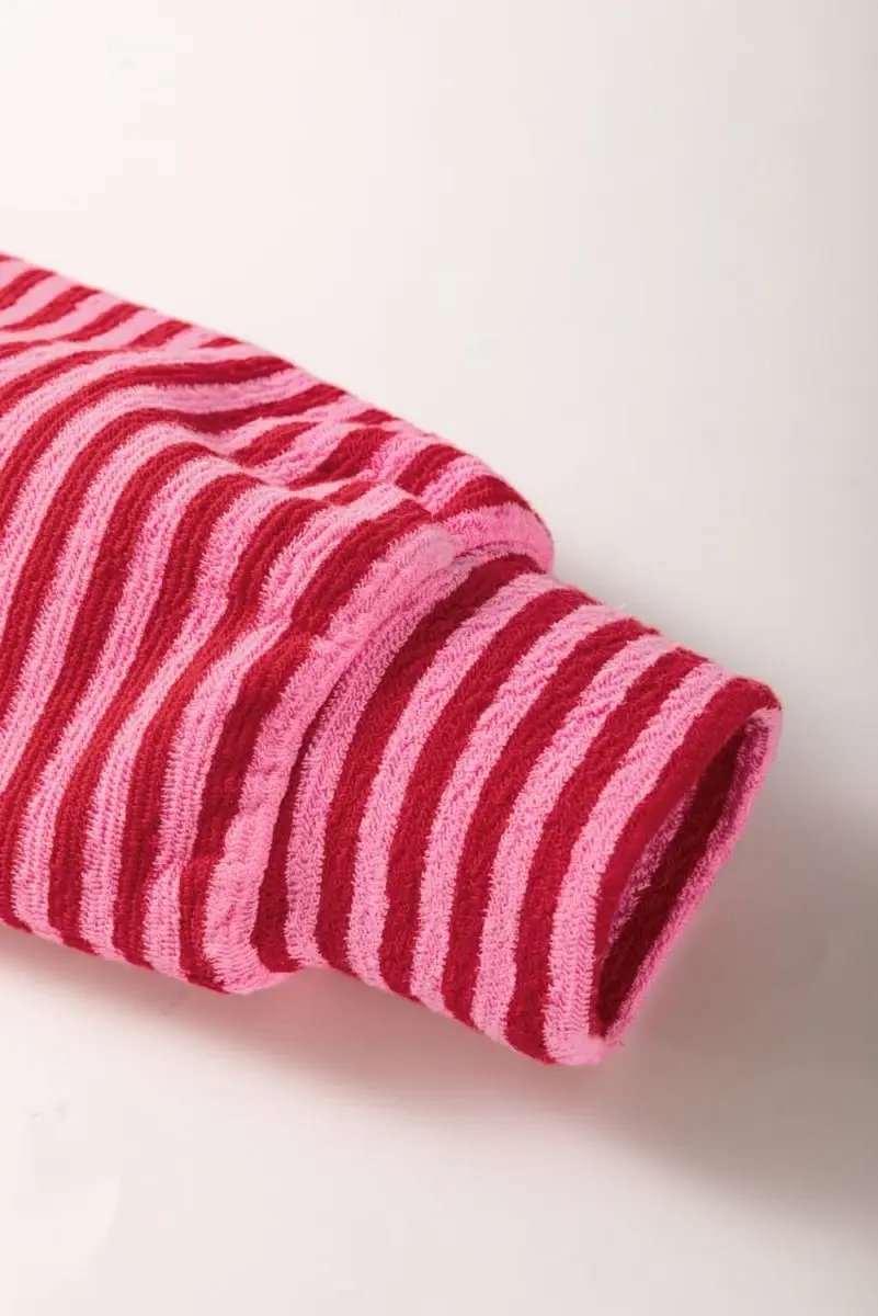 Color Block Pink Floral Textured Top with Striped Sleeves