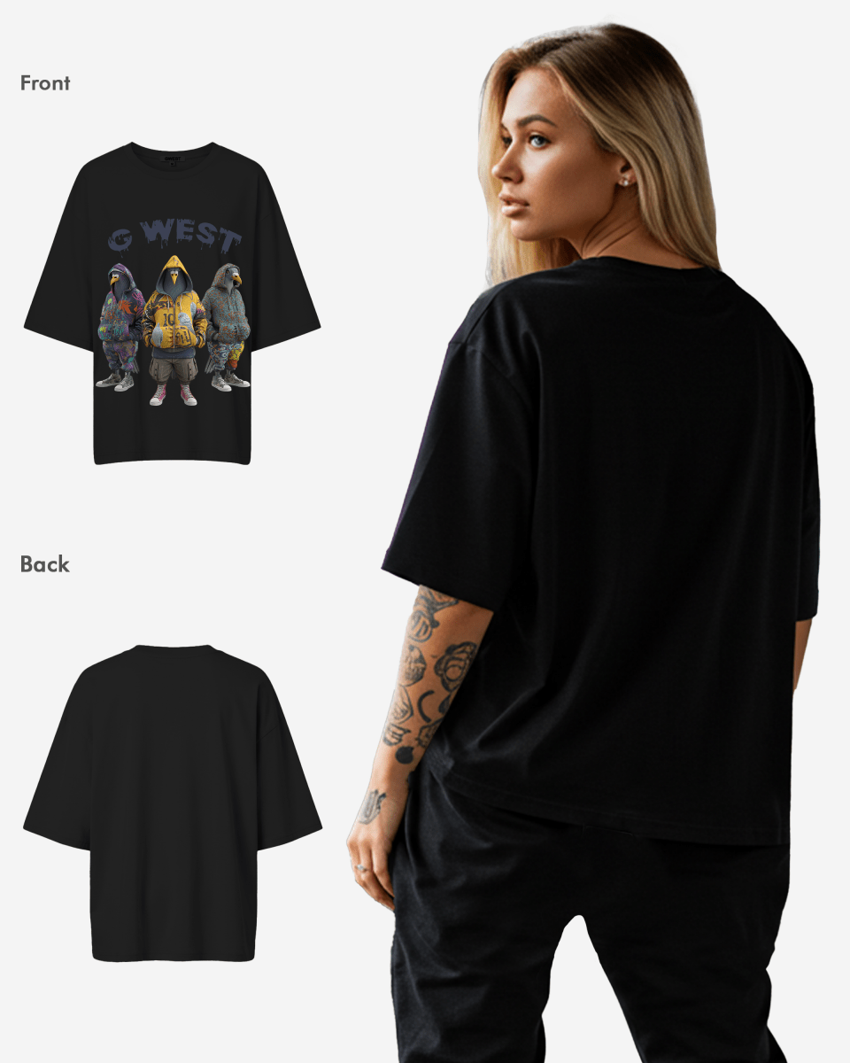 Subtle rebellion meets urban charm in the G West 3 Pigeon Oversized Tee for Women. Showcasing an artistic interpretation of three city pigeons, this tee transforms everyday imagery into thought-provoking street fashion. Symbolizing adaptability and grit, the design pays tribute to resilience in fast-moving worlds. Crafted from ultra-soft, breathable cotton, it wraps you in comfort while maintaining an editorial streetwear aesthetic.