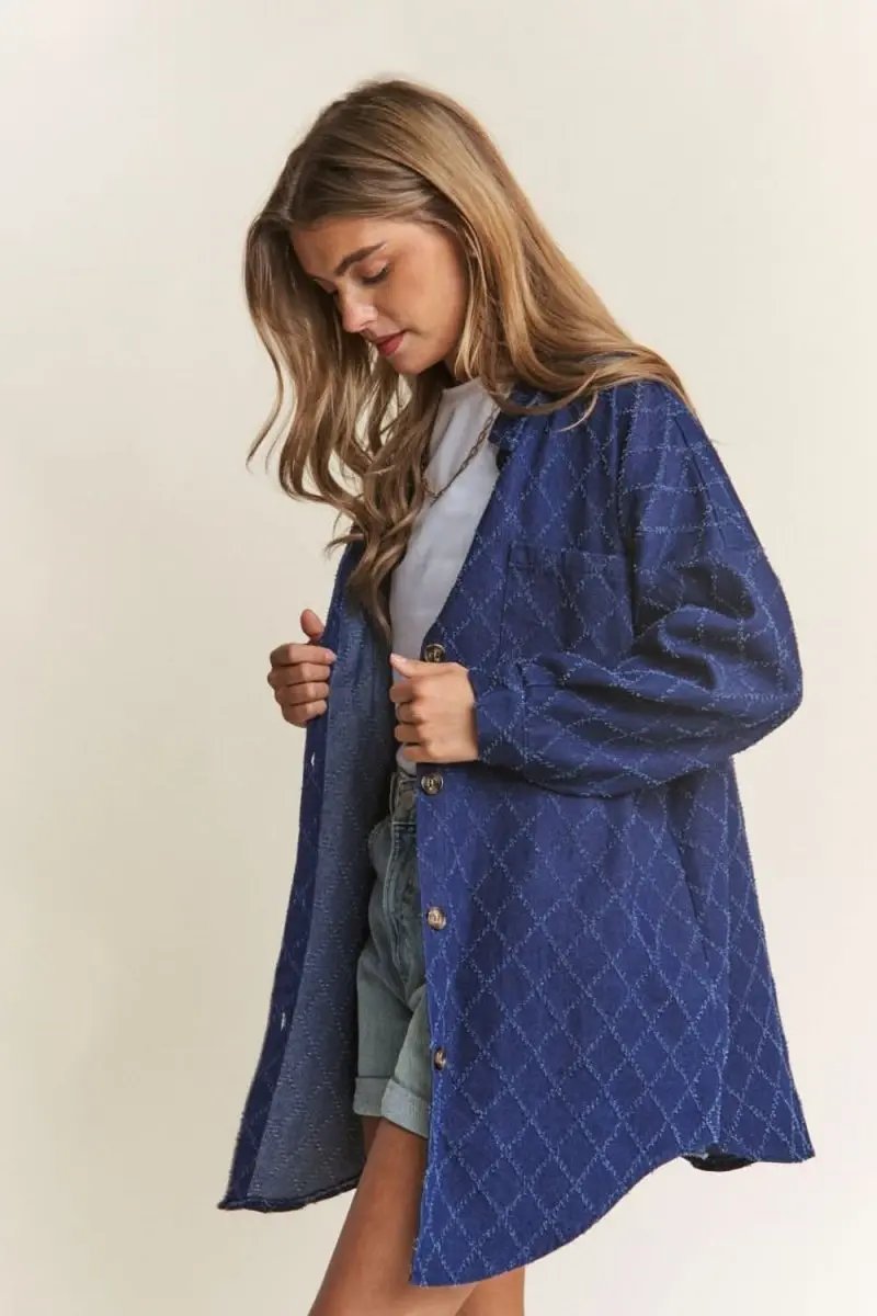 J.NNA Rhombus Stitched Button Up Denim Shacket
