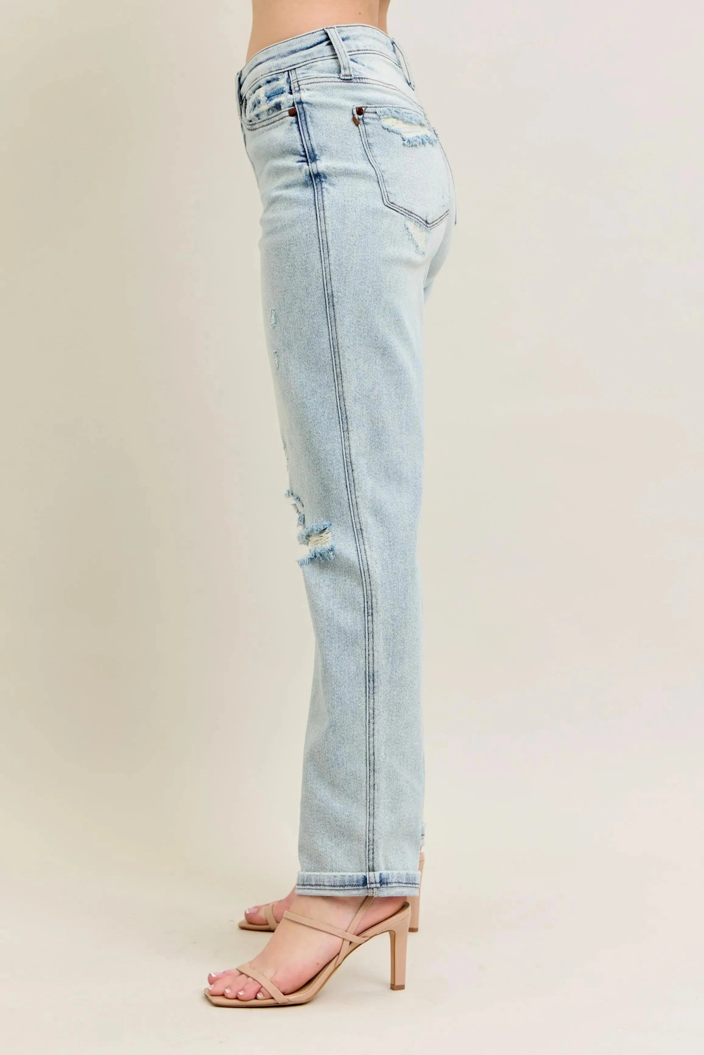 Trendsi Judy Blue Plus Size Boyfriend Jeans Women's Casual Destroyed Denim USA Ship ‐ LT / 24W