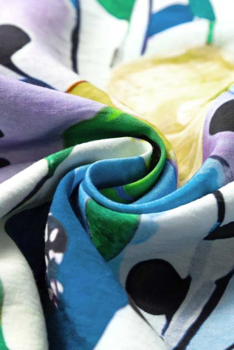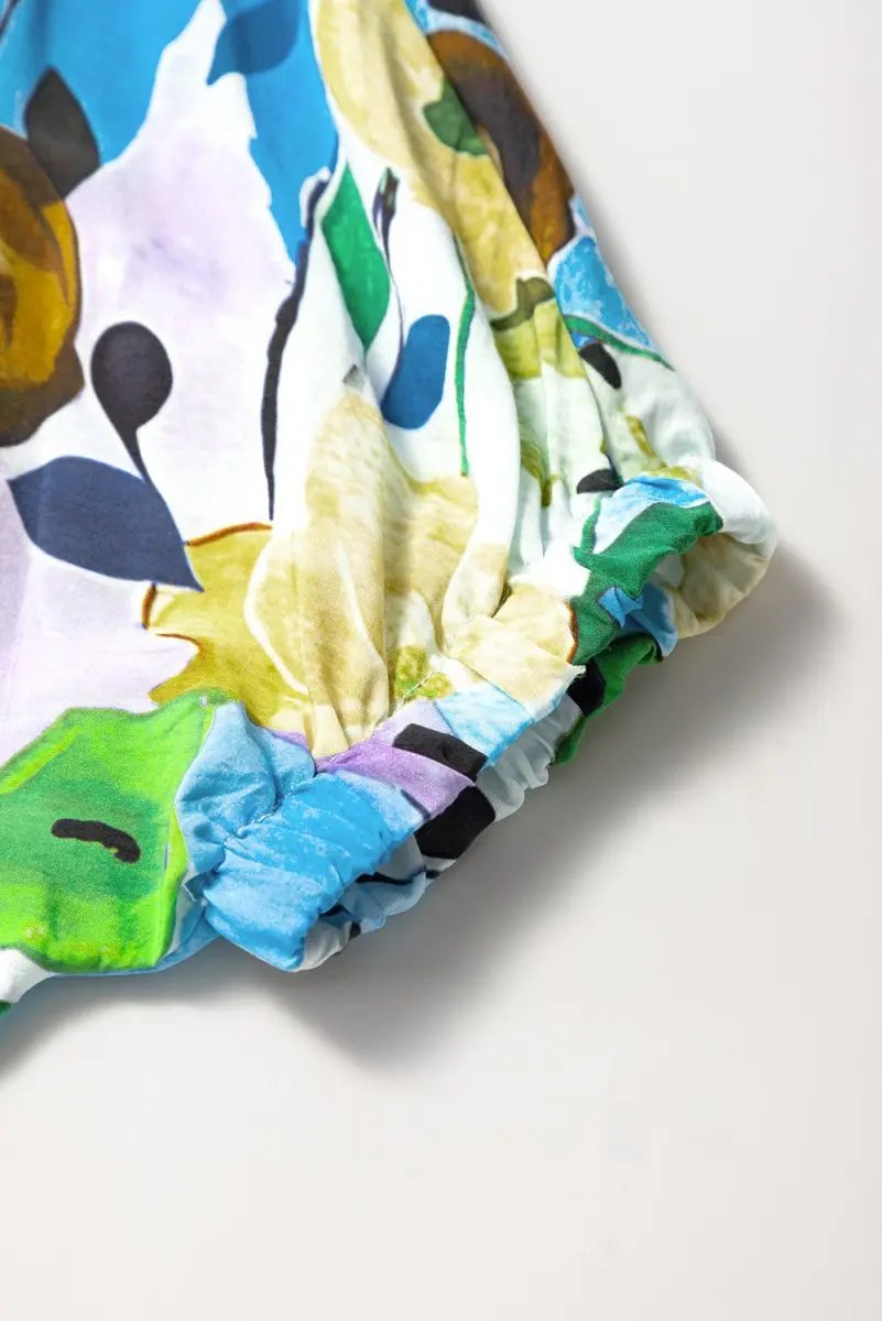 Step into effortless elegance with a blouse that blends feminine print with refined details. The light blue floral print adds a soft, versatile touch, while a slit V-neck creates a flattering neckline. Short puff sleeves with elastic cuffs provide shape and comfortable wear through the day. The fabric is a soft viscose blend (81% viscose, 19% polyamide) that drapes smoothly against the skin.