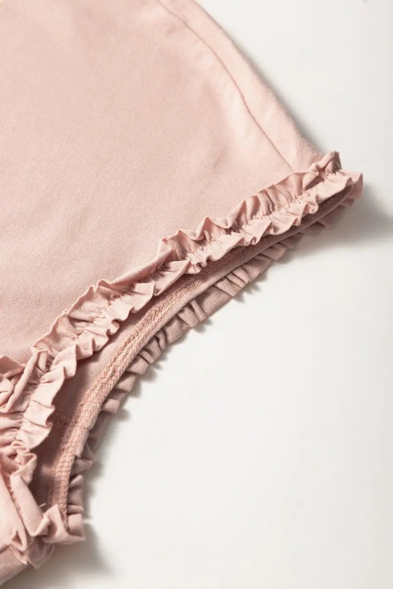 Love Salve Pink Mini Dress Women's Daily Casual Summer Outfit Frilled Trim, Loose Fit ‐ Oatmeal / L / 95%Cotton+5%Elastane