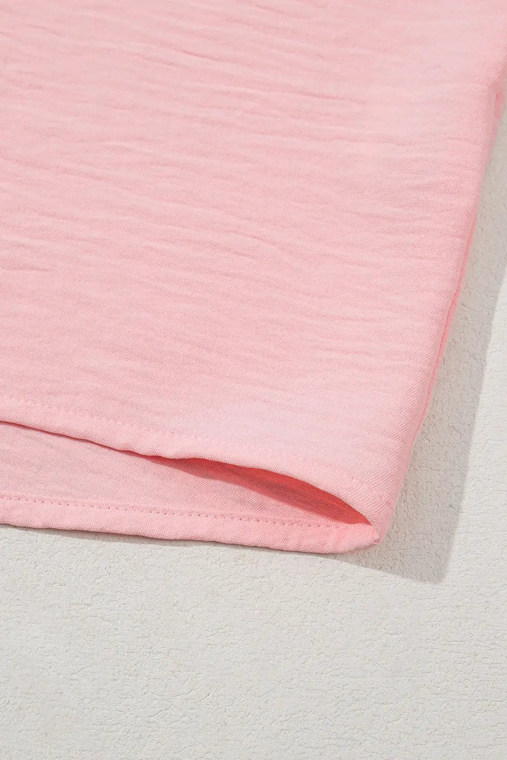 Introduce effortless style to your everyday looks with the Pink Textured Half Sleeve V Neck Plus Size T Shirt with Chest Pocket. Designed for curvy figures, this oversized T-shirt blends comfort with a polished silhouette. Crafted from 100% polyester, the textured fabric feels soft against the skin and resists everyday wear. The V-neck and half sleeves promote breathability, while the relaxed oversized fit drapes smoothly over curves. A practical chest pocket adds subtle detail without compromising clean lines. This versatile top pairs easily with leggings, shorts, or jeans for a casual yet put-together appearance.