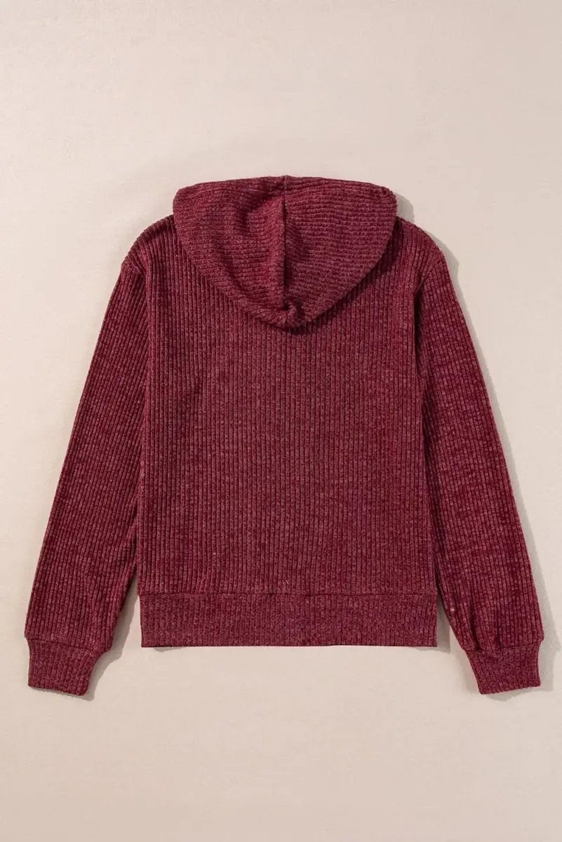 Red Dahlia Ribbed Zip Up Front Drawstring Hoodie