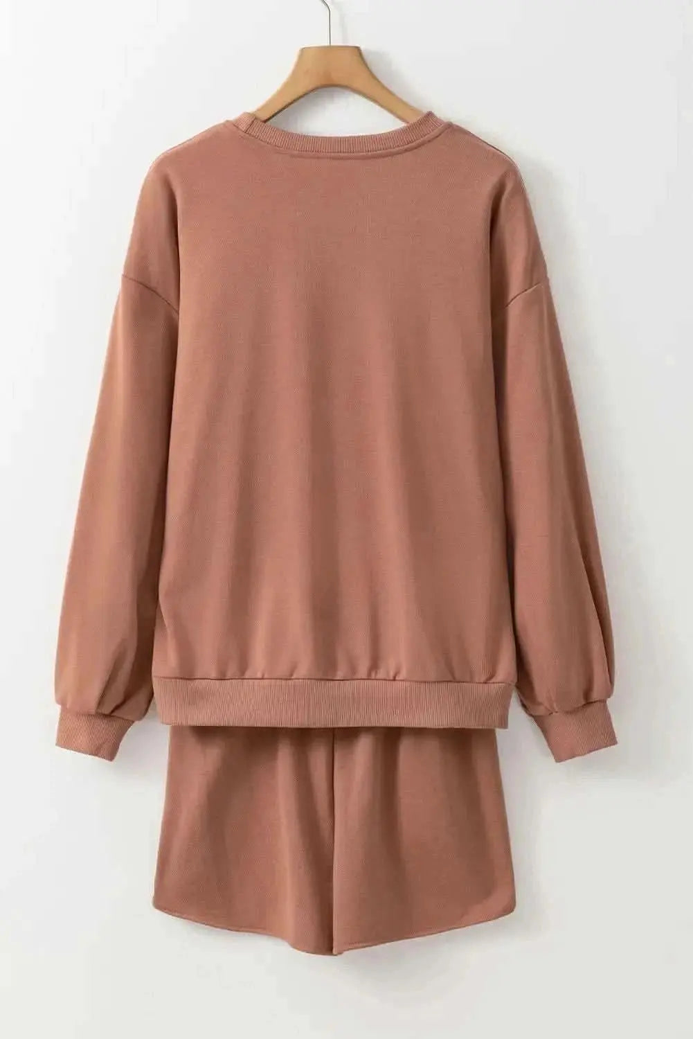 Trendsi Sequin Two-Piece Set Women's Party Outfit Top & Shorts - Glamorous & Fashionable ‐ Taupe / L