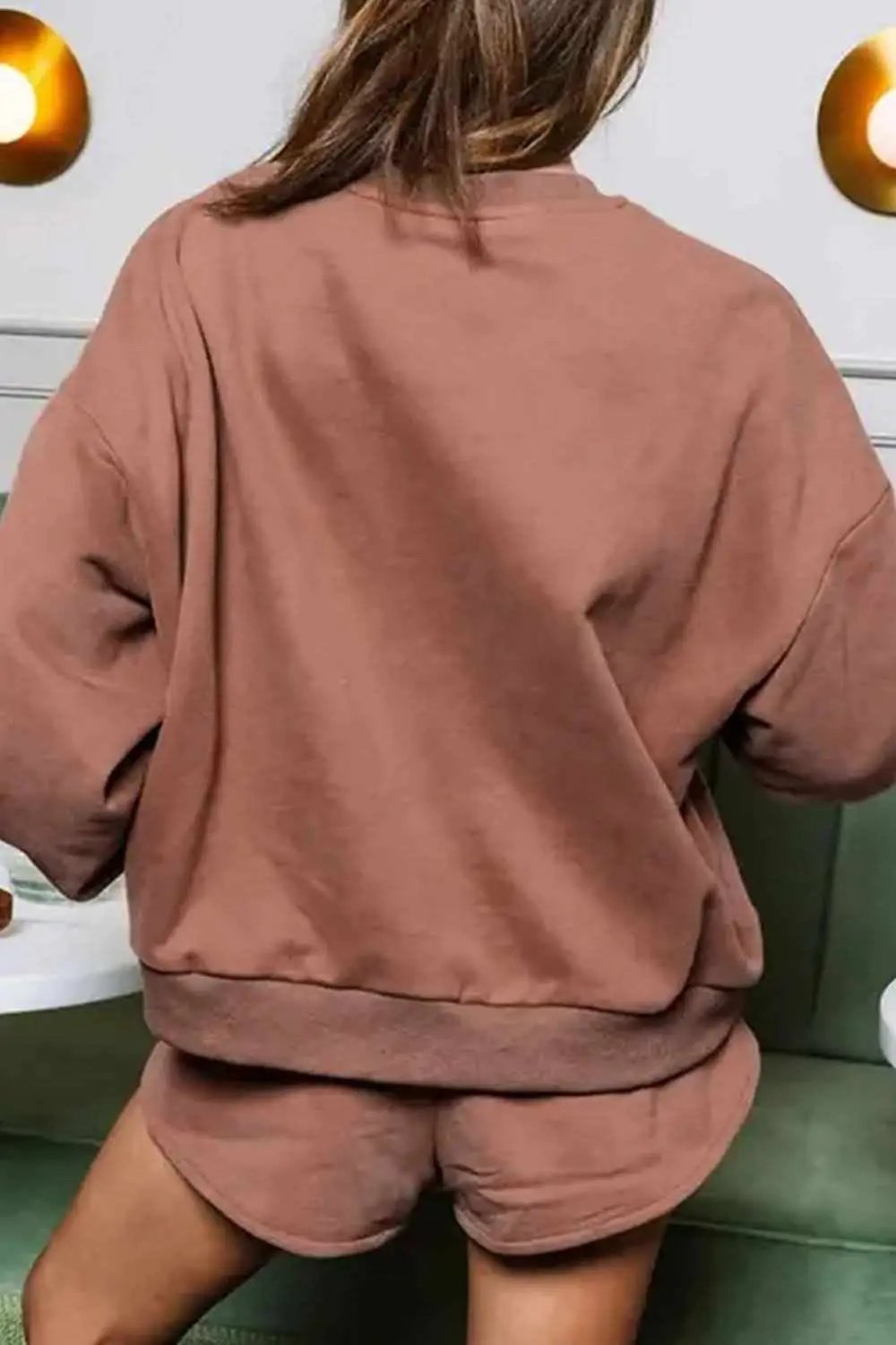 Trendsi Sequin Two-Piece Set Women's Party Outfit Top & Shorts - Glamorous & Fashionable ‐ Taupe / XL
