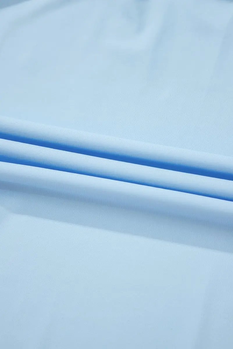 Fabric: 88% polyamide, 12% elastane for excellent stretch and durability. Color: solid sky blue. Size range: S to XL, providing a versatile fit across body types. Closure: adjustable drawstring at the waistband for secure, personalized comfort.