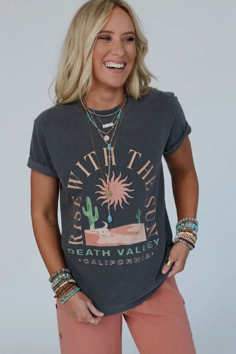 Sunrise Vibes Western Graphic Tee in Dark Grey
