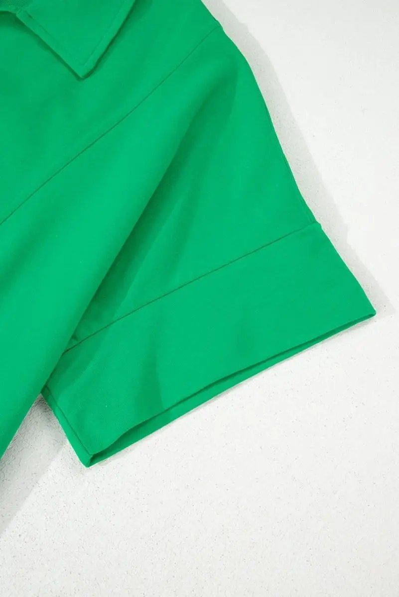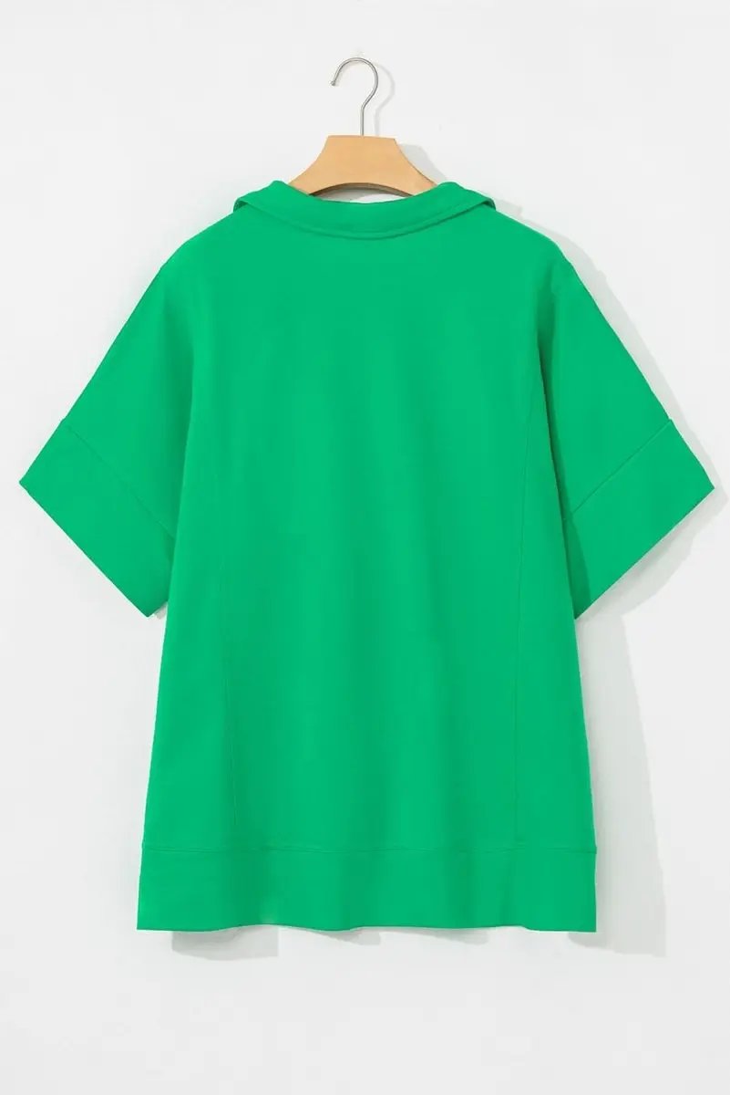 Vibrant Green Plus Size Short Sleeve Blouse with Turn-Down Collar