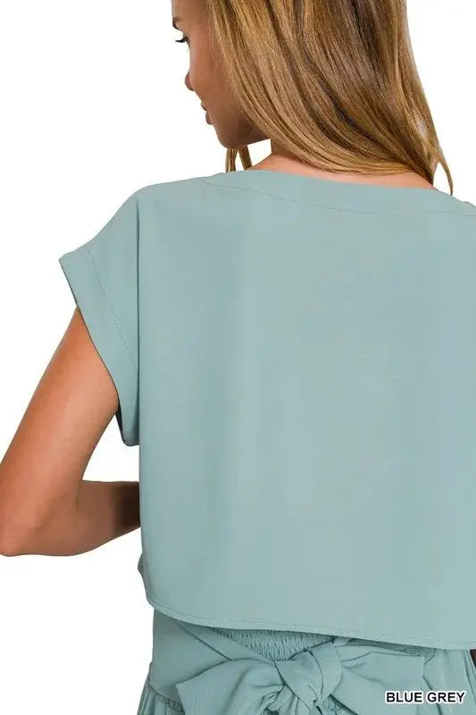 Trendsi Woven Crop Set Women's Casual Two Piece Set USA Shipped ‐ BLUE GREY / S