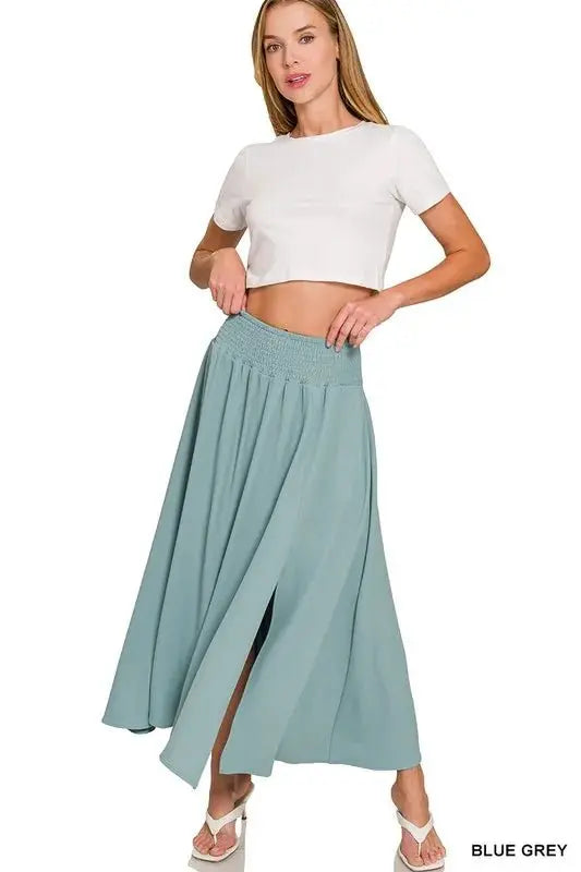 - Waistband: Smocked elastic waistband on the skirt
