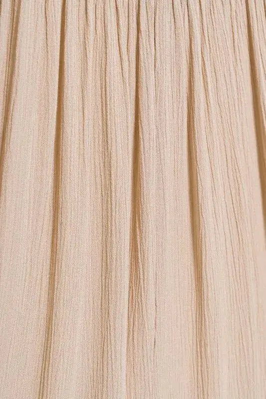 Trendsi Gauze Set Women's Casual Crinkle Crop Top & Skirt Set USA Made ‐ SAND BEIGE / S