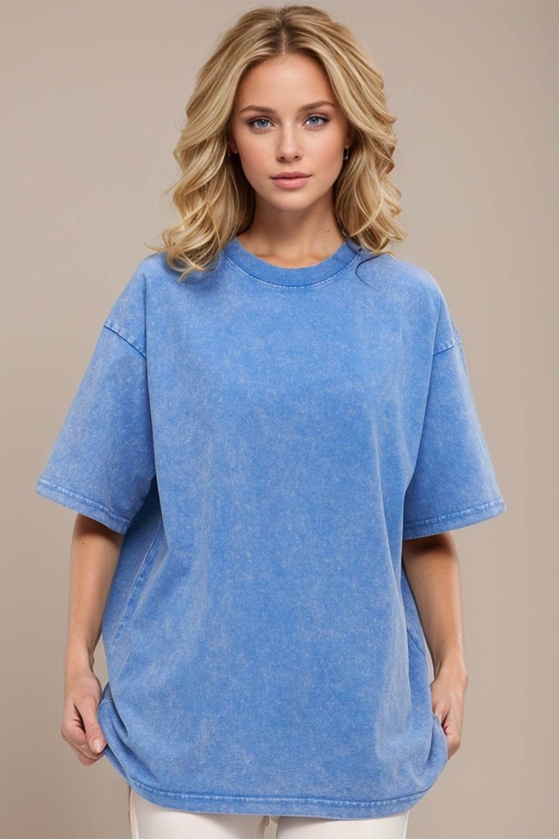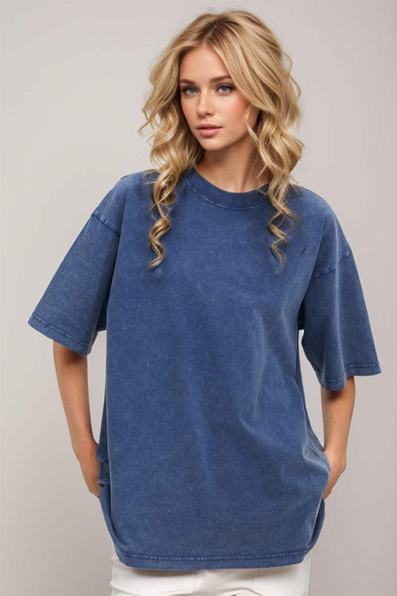 Basic Bae Round Neck Half Sleeve T-Shirt for Women ‐ Dusty Blue / 2XL