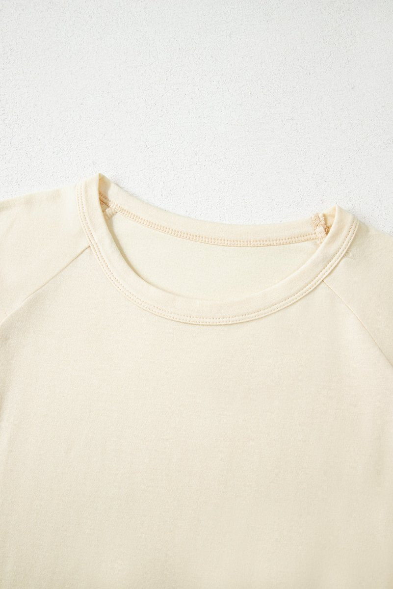 White Color Block Stitched Sleeve Loose T Shirt for Women