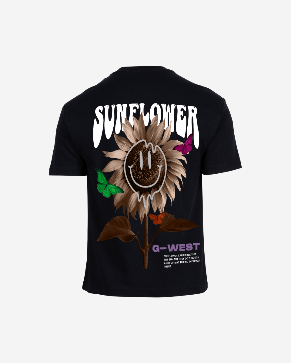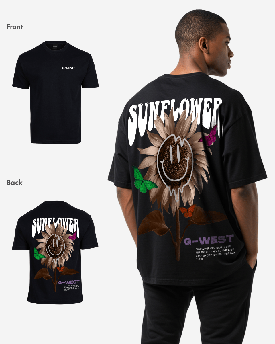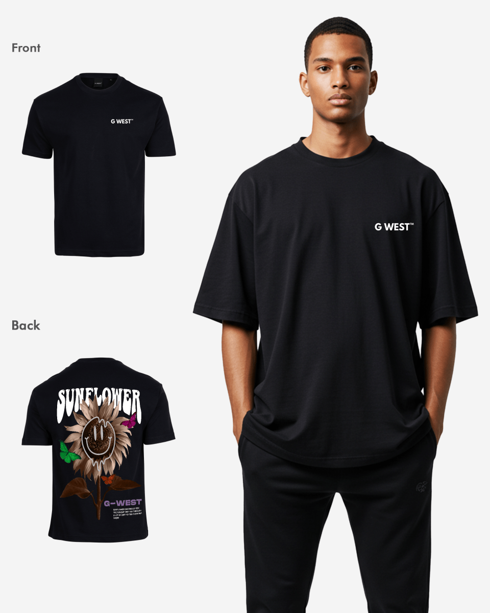 G West Mens Oversized Sunflower Life Style T Shirt ‐ Black / XXL