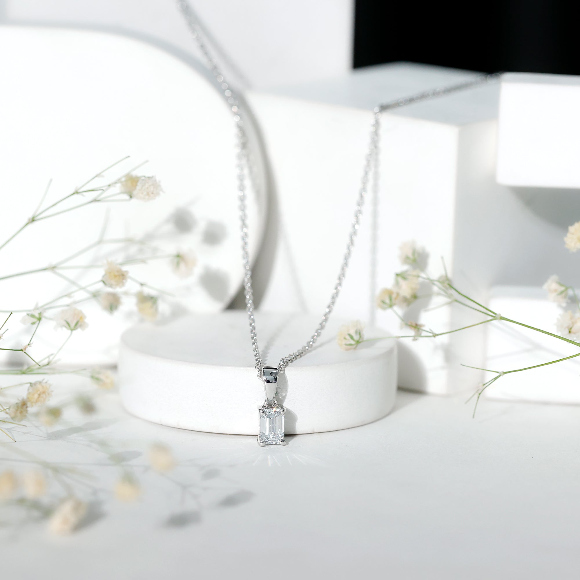 4X6MM Emerald Cut Lab Grown Diamond Solitaire Necklace with Chain
