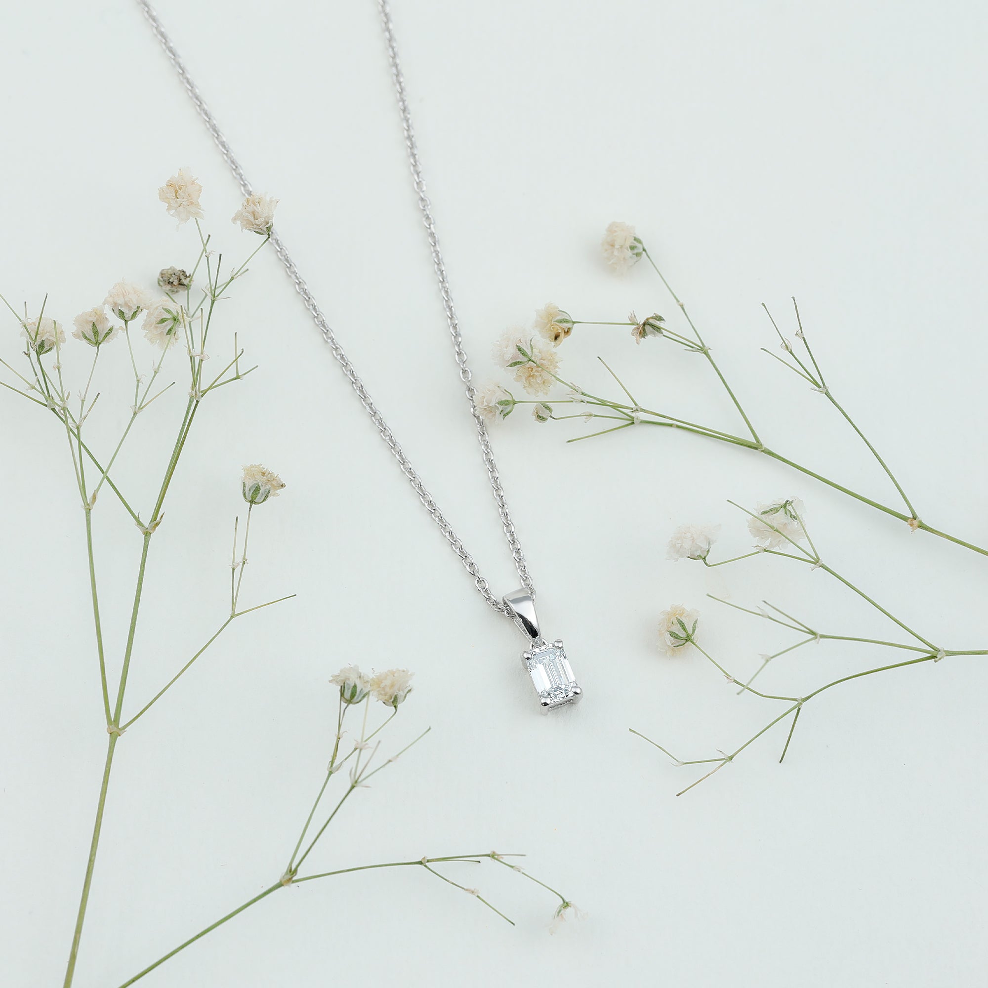 This Lab Grown Diamond Pendant is precisely crafted with 14K White Gold Plated Silver to complete your look for a special day. The pendant features a 4X6 MM Emerald Cut Lab Diamond of EF-VS Quality that is securely placed in Prong Setting. This Solitaire Pendant is attached to a cable chain, which allows the adjustment according to your style statement. This Emerald Cut Diamond Necklace can be presented to your lady love as a symbol of love. The Cultured Diamond Necklace will be delivered to you in a premium packaging with a certificate of authenticity of Lab Created Diamond.