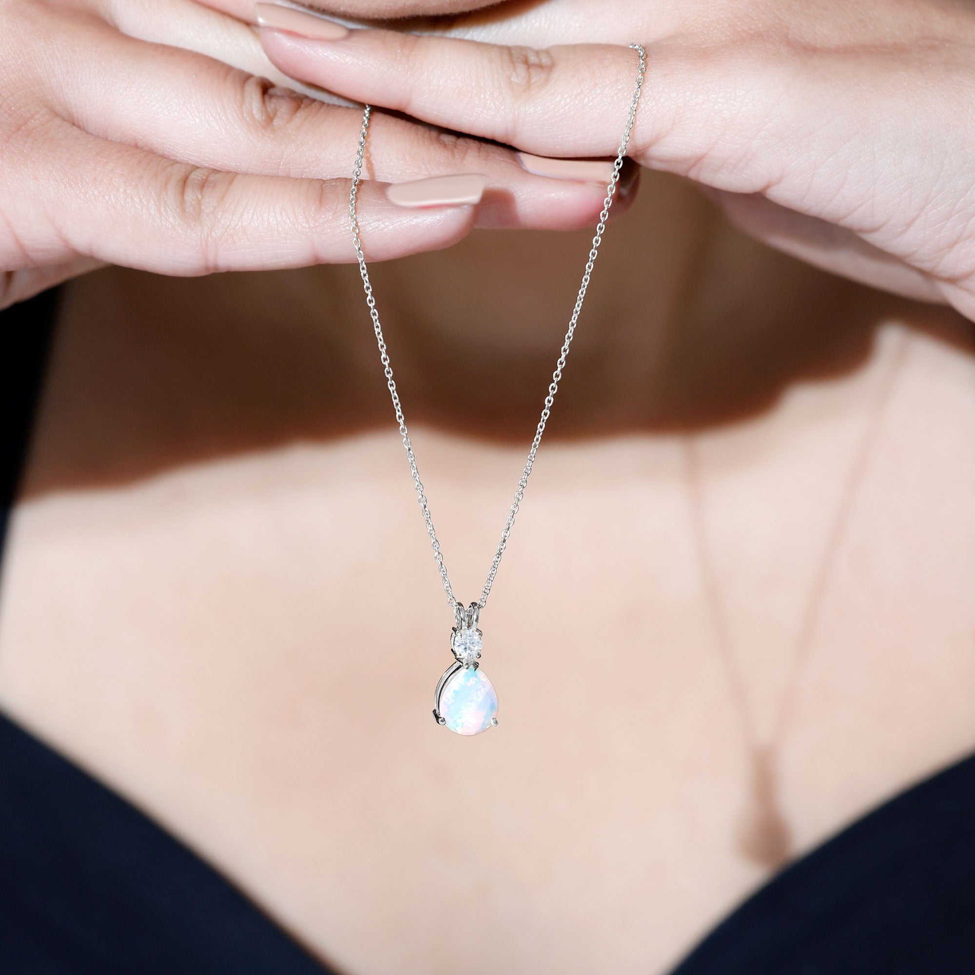 8X10MM Pear Shaped Rainbow Opal Teardrop Necklace with Moissanite