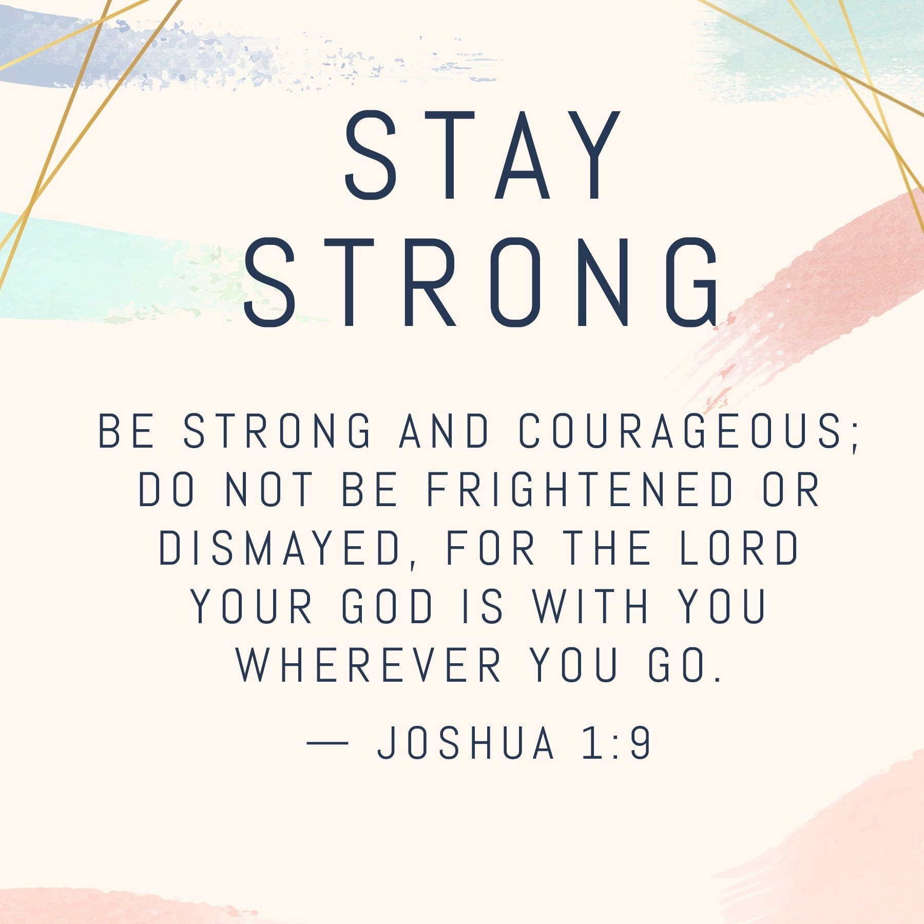 Bible Quote: Be strong and courageous; do not be frightened or dismayed, for the Lord your God is with you wherever you go. — Joshua 1:9