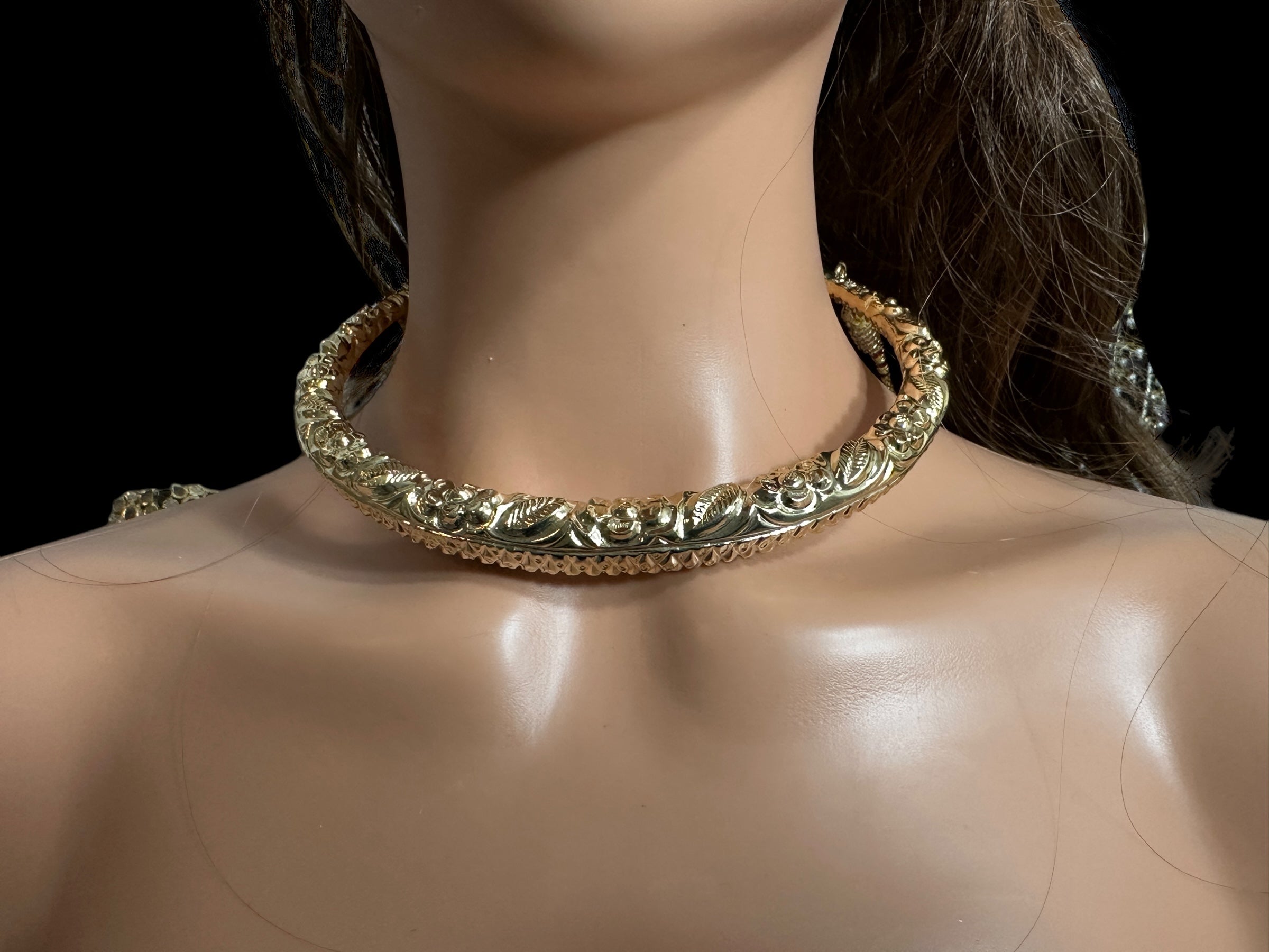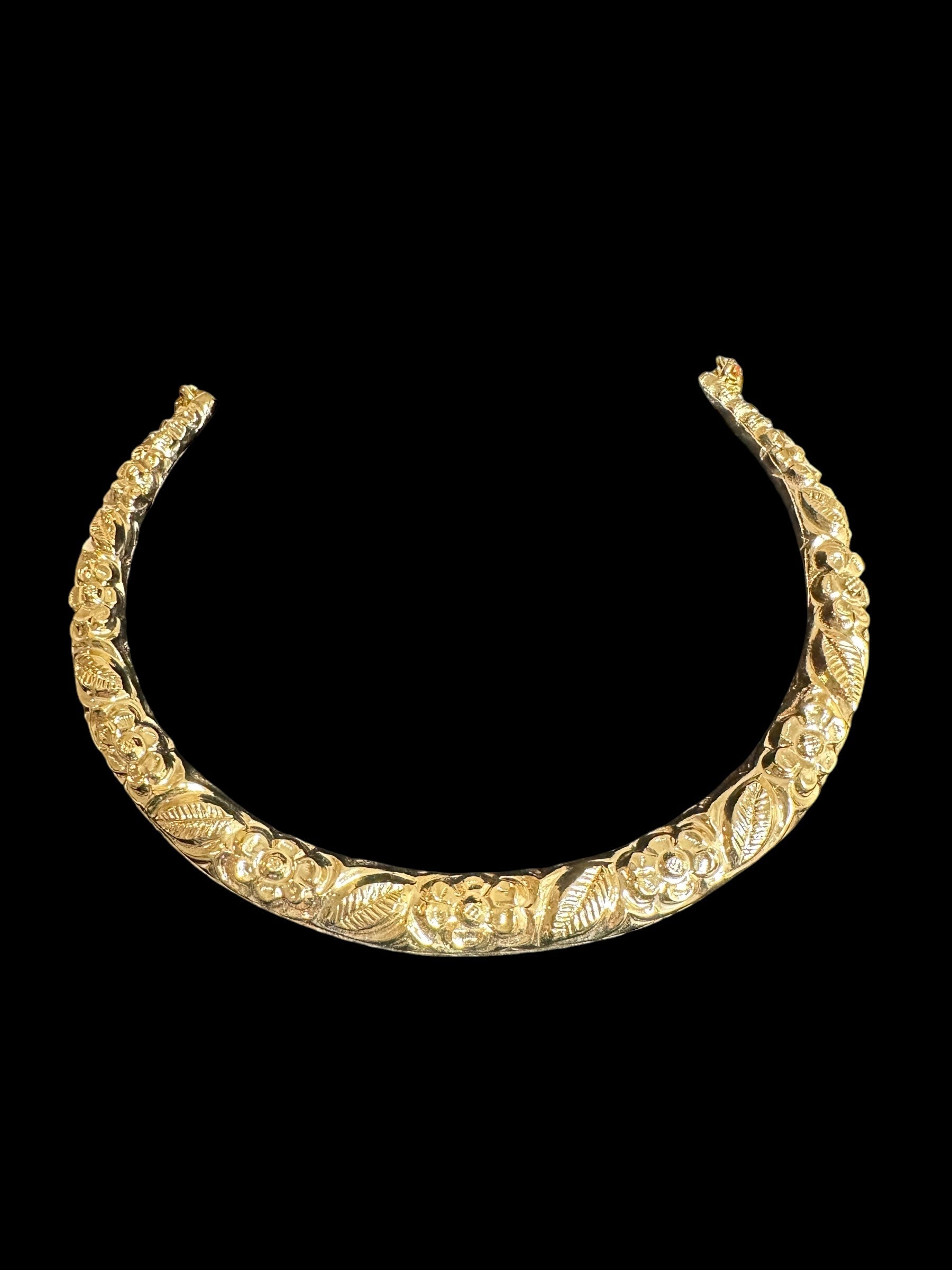 C548 Gold-Plated Floral Hasli Necklace with Chandbali Earrings – Handcrafted Traditional Set ( SHIPS IN 4 WEEKS )