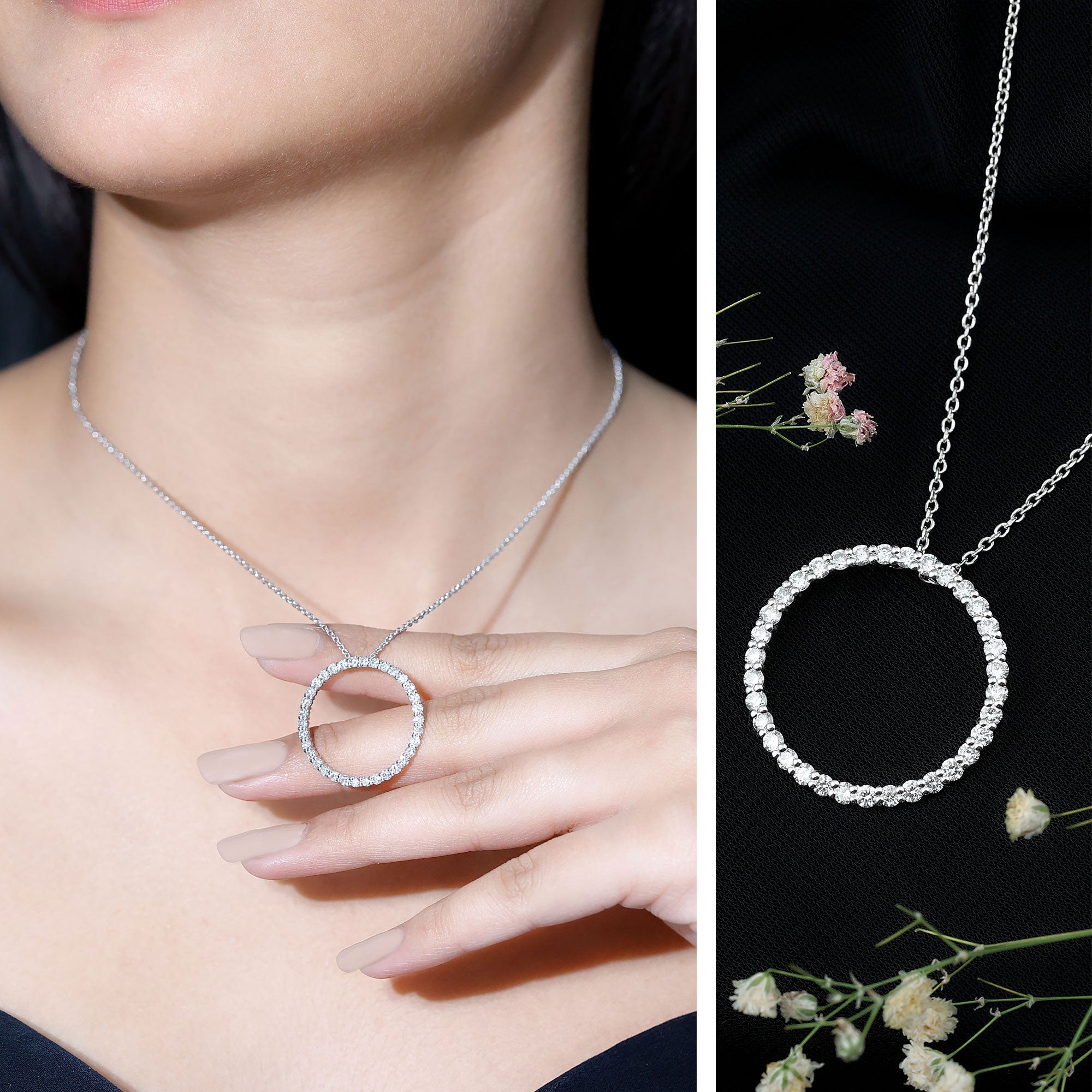 Certified Cubic Zirconia Circle Necklace with Silver Chain