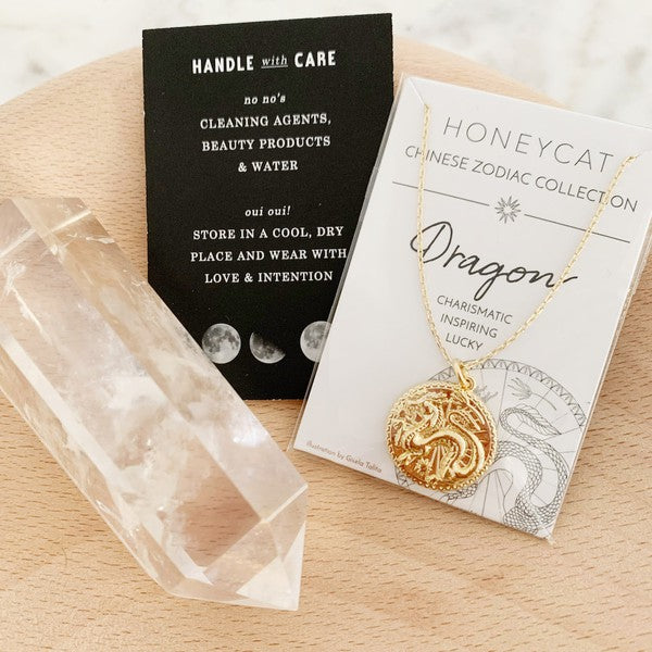 Chinese Zodiac Coin Necklace - Dragon ‐ Gold / One Size