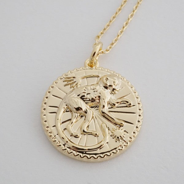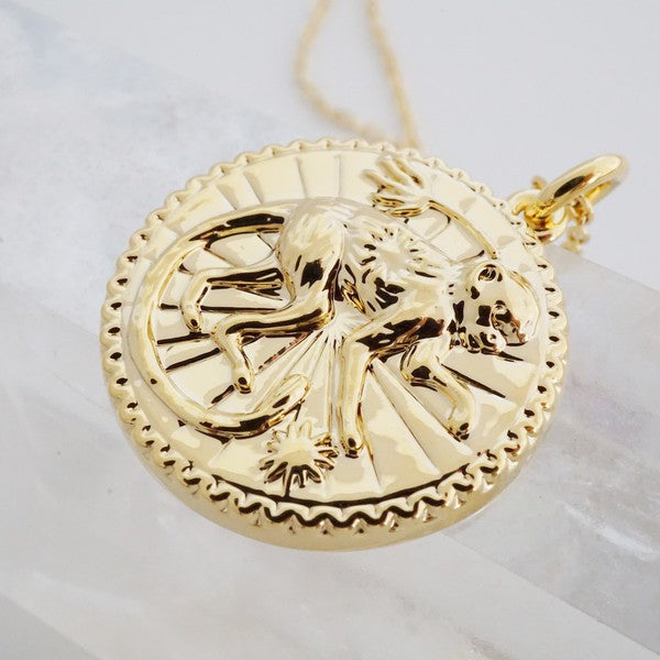 Chinese Zodiac Coin Necklace - Monkey ‐ Gold / One Size