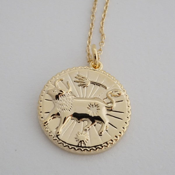 Chinese Zodiac Coin Necklace - Ox ‐ Gold / One Size