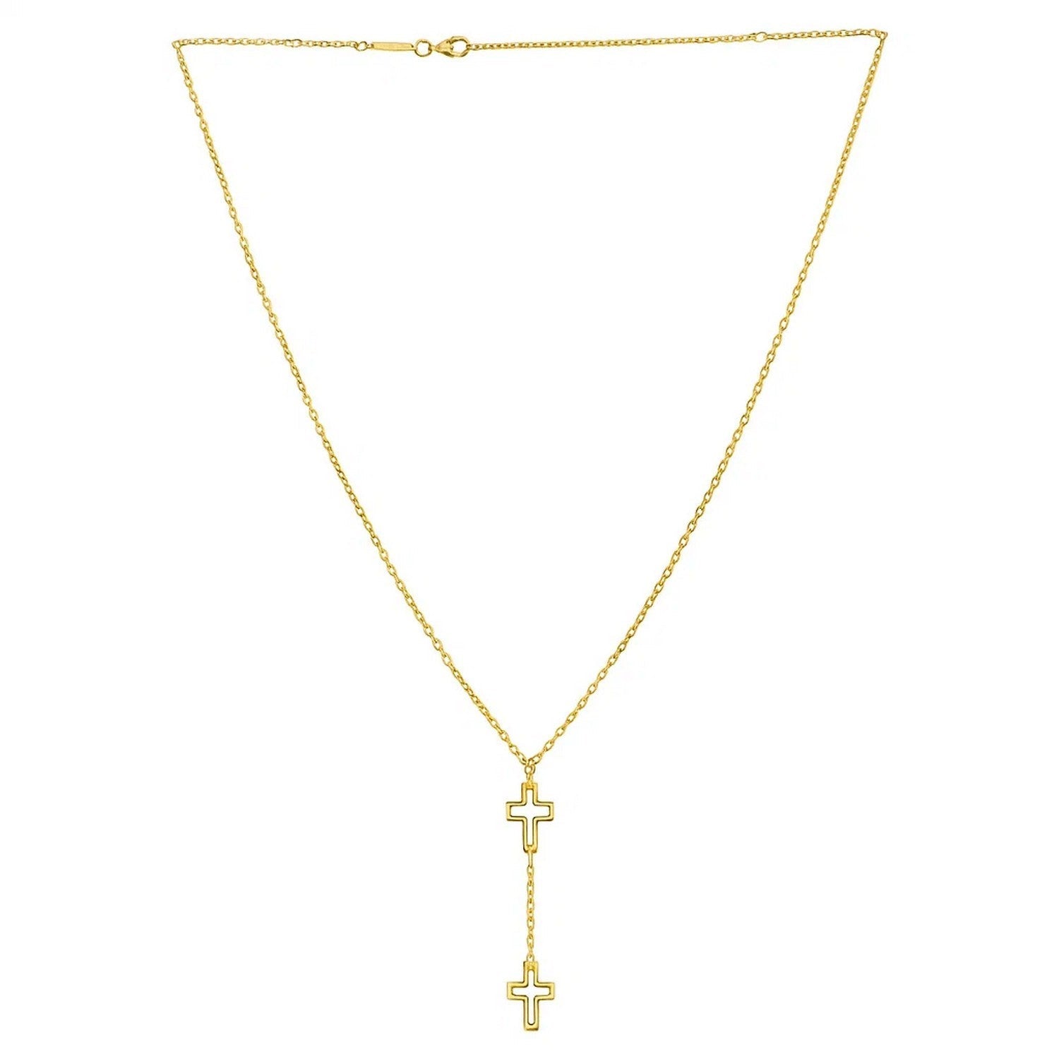 Double Cross Drop Necklace in 14K Yellow Gold ‐ 18 / Yellow Gold
