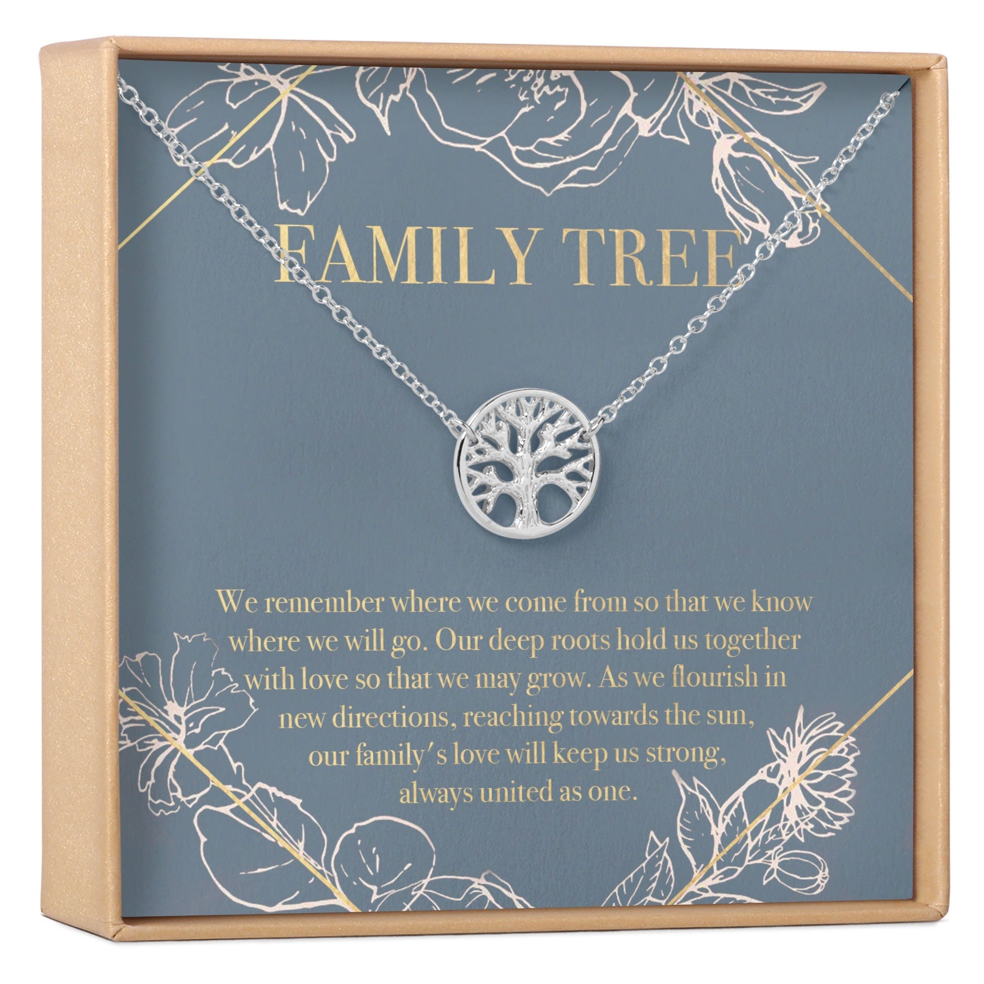 The Tree of Life, or Family Tree, represents the life cycles of a family. The tree has deep roots that grow strong in their place over time, symbolizing the connection to home and to earth. As time passes, the tree grows taller and its branches spread, symbolizing a growing family and community as well as personal growth throughout a lifetime. Finally, a tree also drops seeds and spawns new seedlings throughout the course of its lifetime, starting its own family. The Tree of Life / Family Tree pendant necklace is the perfect gift for your loved ones for all occasions, including Mother's Day, Christmas, Birthdays, Anniversaries, and more! Show your Mother, Grandmothers, and Great Grandmothers your strong connection with this symbolic and beautiful present.